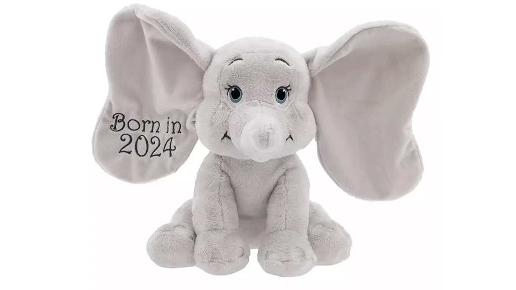 Omogućite rano upoznavanje beba s Disneyjevim svijetom s ovom slatkom Dumbo plišanom igračkom, na čijem je jednom uhu izvezeno "Rođen 2024".