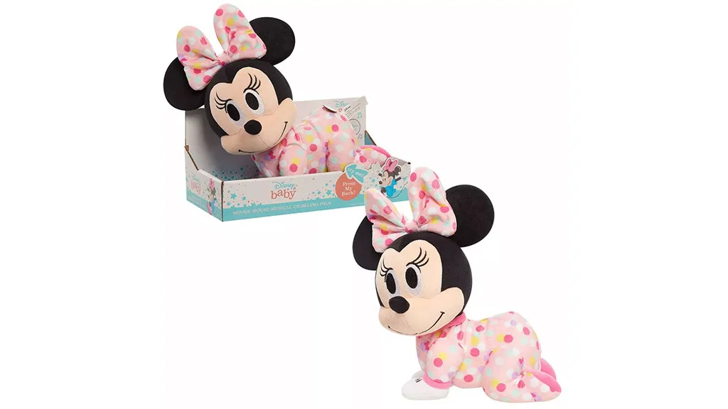Bebama mogu naučiti puzati s Minnie Miš, s ovom interaktivnom plišanom igračkom. Minnie počinje puzati kada bebe pritisnu njezin leđa, i svira umirujuću glazbu te priča.