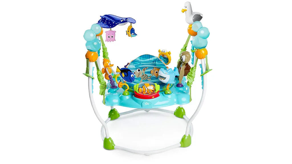 Bebe mogu skakati i na dnu mora s ovom igračkom za skakanje na temu "U potrazi za Nemom", koja uključuje igračke likova kao što su Dory, Bruce Ajkula, Nemo, Squirt i mnogi drugi! Dok bebe skaču, mogu aktivirati svjetla i zvukove kako bi ih potaknuli na još više kretanja!