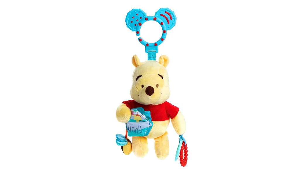 Medvjedić Winnie susreće se sa senzornom igrom u ovoj dječjoj igrački koja će sigurno postati osnovni predmet koji se može nositi svuda. Ovaj plišani medvjed također ima valjkasti medenjak koji je opremljen s prozorčićem za kukucanje, teksturiranim trakama, pčelicom koja pišti, i naravno, trbuščićem koji se kotrlja.