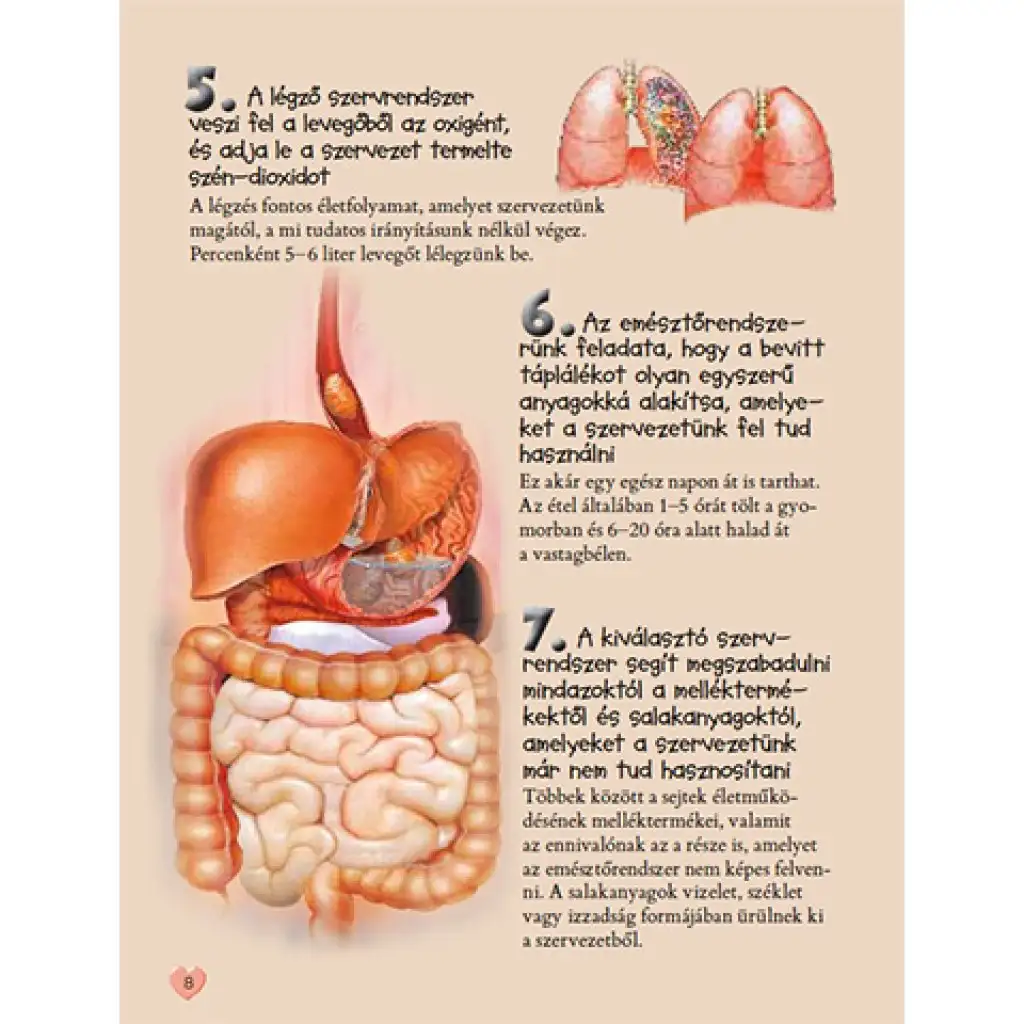 Iz ove knjige djeca mogu naučiti mnogo zanimljivih stvari, kao na primjer koliko mišića se nalazi u ljudskom tijelu. Mogu saznati kako funkcioniraju naši najvažniji organi, od čega se sastoji proces probave ili reprodukcije. Ali to je samo nekoliko primjera, jer uz pomoć brojnih šarenih ilustracija možete proći kroz naše tijelo od stopala do vrha glave. Knjiga od četrdeset osam stranica sastavljena je za djecu otprilike devet godina.