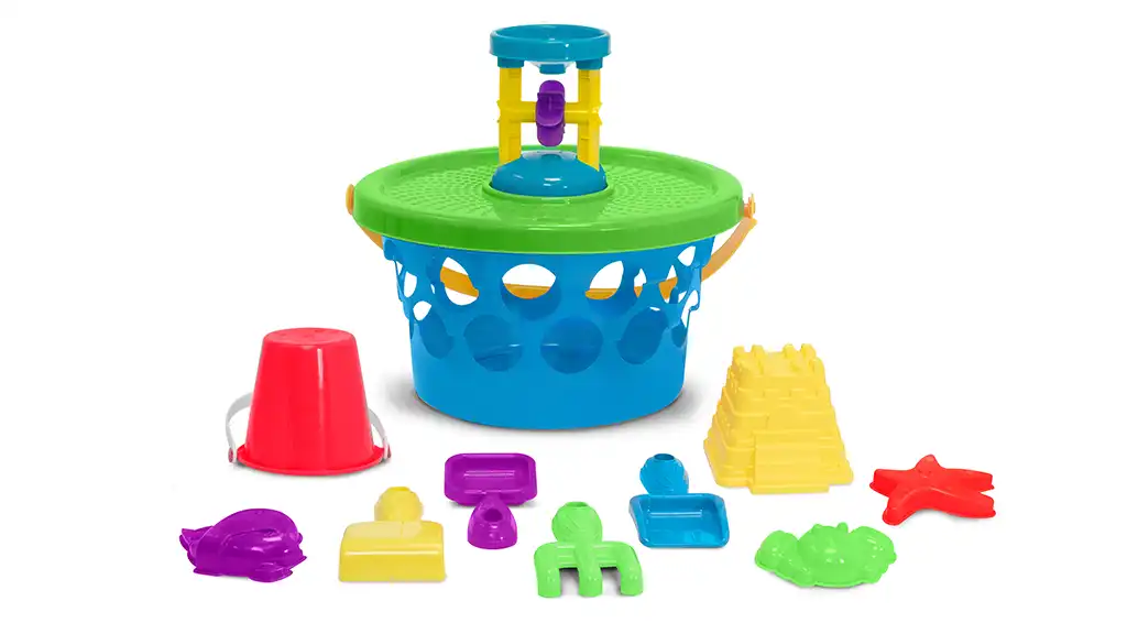 Jedan dan na plaži još je bolji s ovim setom koji sadrži mlin za pijesak/vodu, kalup za dvorac, tri mala kalupa za pijesak, četiri alata za pijesak, malu kantu, poklopac za kantu koji također služi kao sito za pijesak i veliku kantu za plažu.