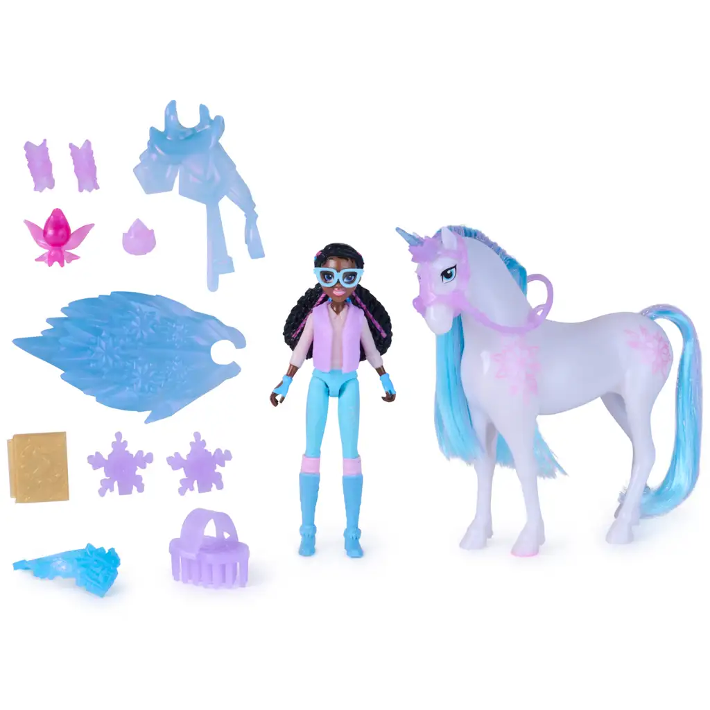Layla je lutka visoka oko 11 cm, ima 7 pokretnih točaka, pa se lako može postaviti u položaje za jahanje ili avanturu. Njezina detaljno izrađena odjeća i frizura podsjećaju na stil serije. Glacier je jednorog visok oko 12–13 cm, sa sjajnom grivom i repom te ukrasima inspiriranim draguljima. Pomoću uklonjivog sedla i uzde Layla se može sigurno smjestiti na njegova leđa, tako da zajedno mogu započeti nove misije.