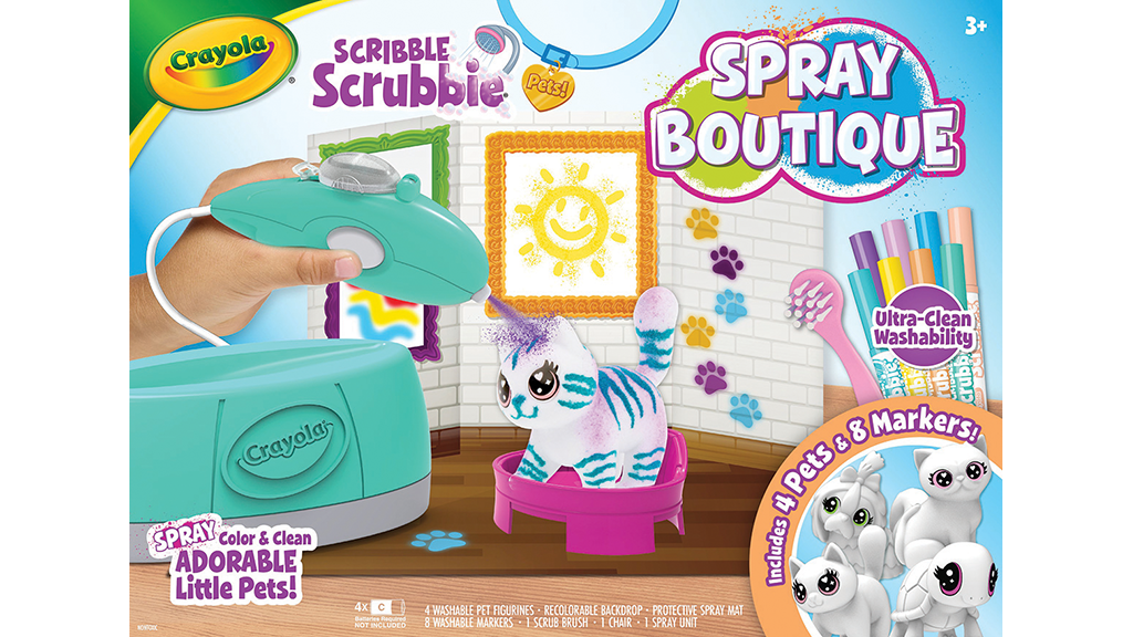 Smjestite bilo koju od četiri male životinje na stolicu u salonu kako biste prilagodili njihov izgled s priloženih osam perivih flomastera i uređajem za puhanje zraka. Zatim operite životinje vodom kako biste stvorili nove dizajne. Preporučeno za djecu od 3 godine nadalje.