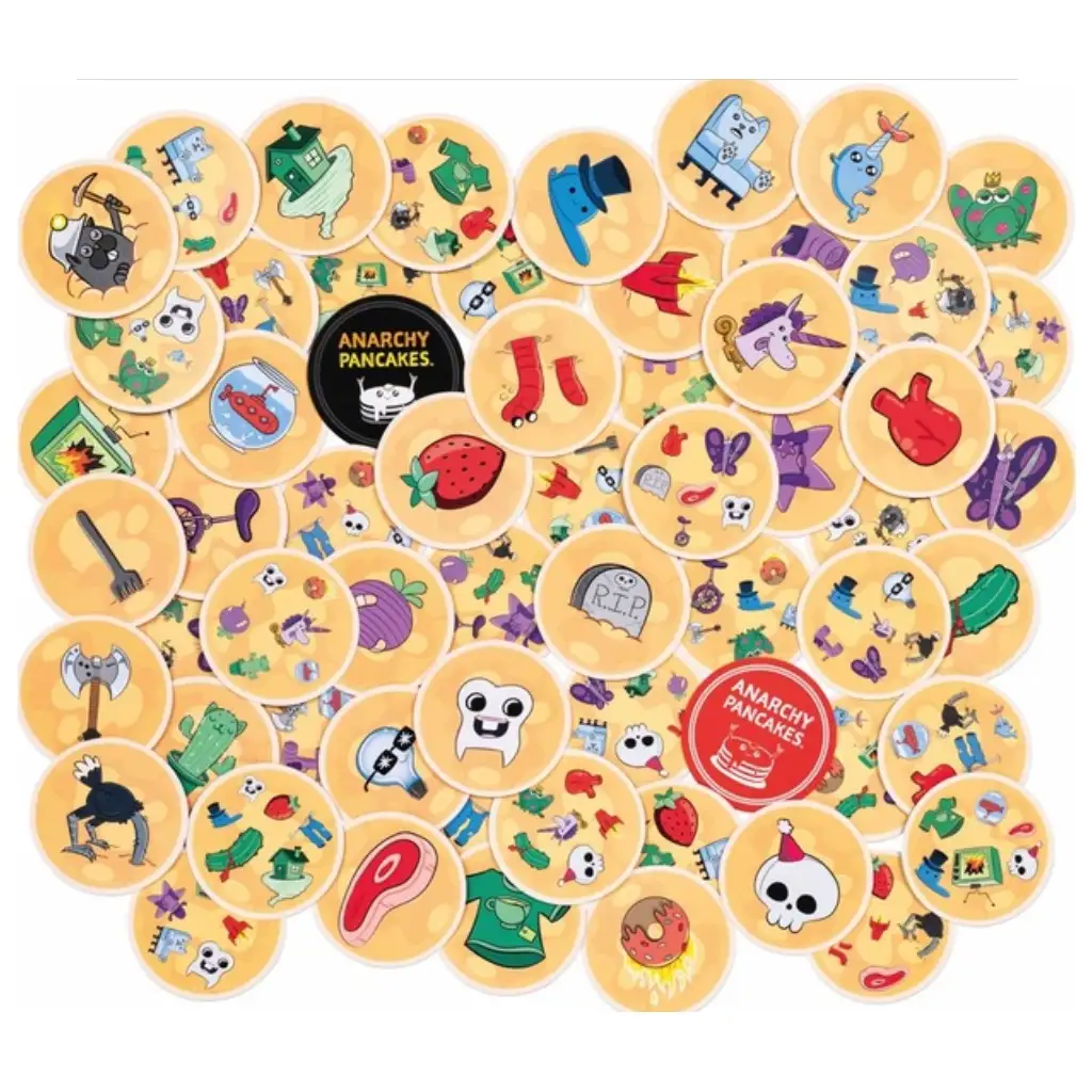 Anarhističke palačinke kartaška igra zajamčeno će ubrzati srca! Ovo je duhovito djelo kreatora Exploding Kittens i Dobble, džepna, brza društvena igra u kojoj morate pronaći zajedničke elemente s ostalim igračima na palačinkama s duhovitim slikama, dok su sve karte istovremeno u igri. Na svakom dijelu stola možete pronaći smiješne figure, a cilj je što prije se riješiti vlastitih palačinki, spajajući ih s tuđima, stvarajući tako zbrku ostalima. Stavljajući na kušnju vašu pažnju i brzinu, borite se za komadić maslaca, a ako ste sretni, možete osvojiti i dva komadića maslaca za pobjedu!