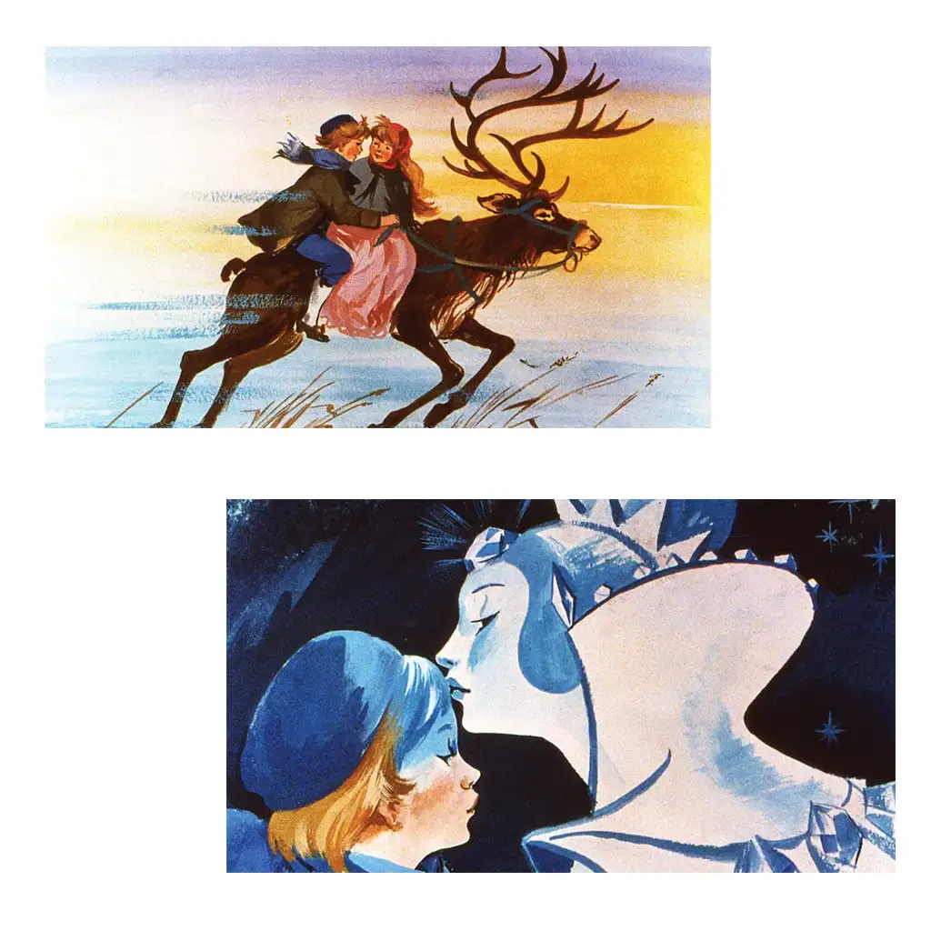 Sjaj snježnih kristala, snježni krajolici i bogati detalji likova doprinose priči i unose čaroliju u domove gledatelja. Ovaj dijafilm nije samo oblik pripovijedanja, već iskustvo koje omogućuje ponovno proživljavanje uzbudljive i poučne priče Snježne kraljice. Crteži koji pažljivo prikazuju osjećaje likova i njihovu okolinu također očaravaju gledatelje, stvarajući nezaboravno putovanje u carstvo bajki.