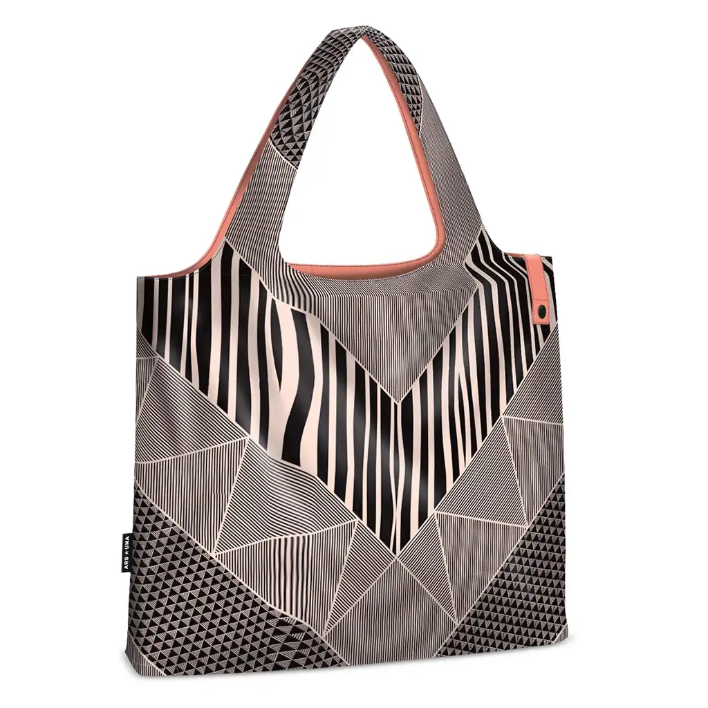 African Confidence shopping torba kombinira modernost i smjelost s praktičnošću i stilom. Kombinacija geometrijskih uzoraka i linija inspiriranih Afrikom čini je zapaženom među običnim shopping torbama, dok njezin kapacitet od 22 litre pruža dovoljno prostora za svakodnevne potrebe. Osim što je dizajn čist, mislilo se i na materijal torbe; izdržljiv je, a opet lagan, tako da ne opterećuje nepotrebno, čak ni tijekom cjelodnevnih gradskih avantura. Lako se čisti i ima površinu koja odbija vodu, što joj omogućuje da preživi svaku avanturu. Također, njena mogućnost sklapanja osigurava da torbu možete lako ponijeti sa sobom, bilo da je riječ o spontanom posjetu tržnici ili planiranom shopping izletu.