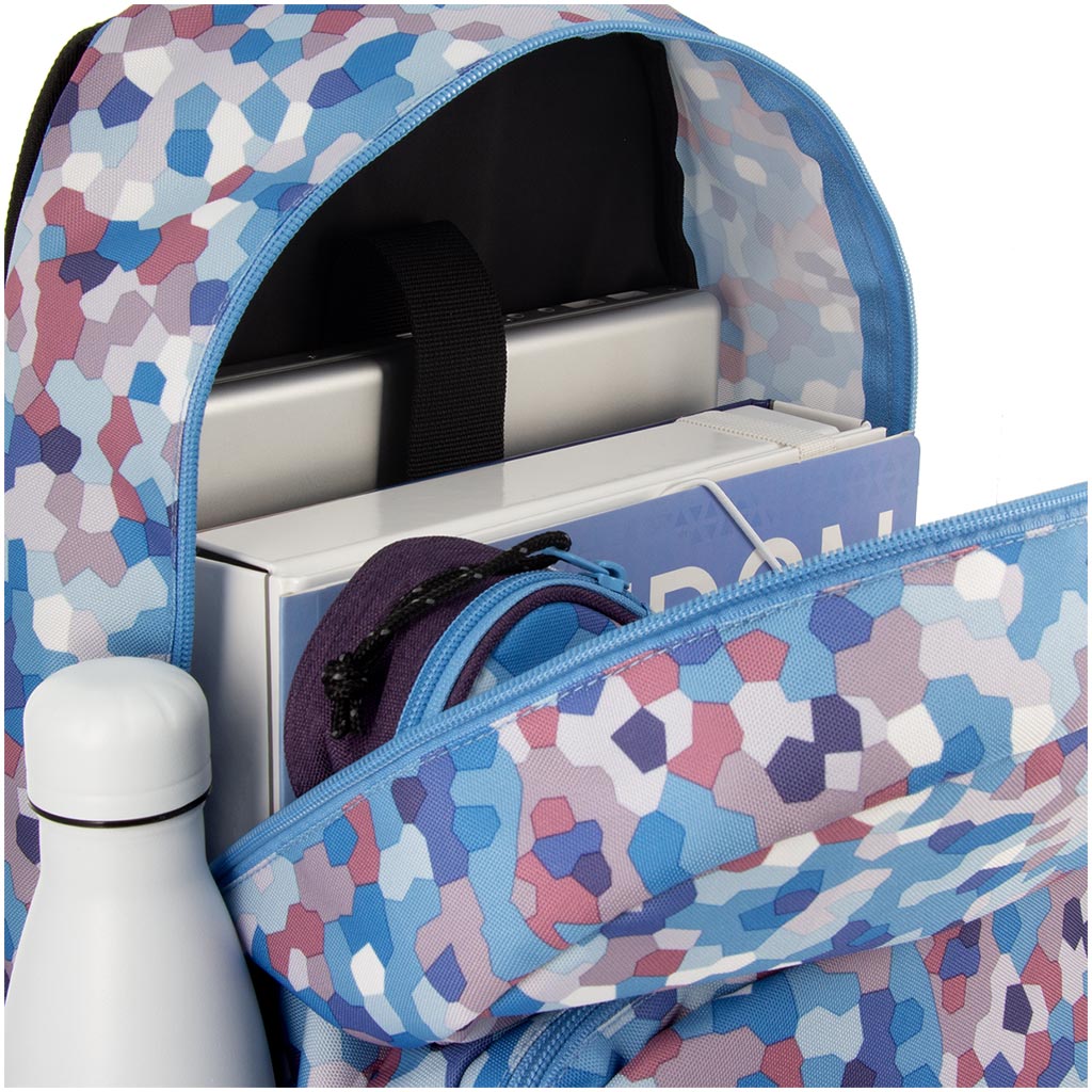 Ars Una Caleidoscope Blue AU-14 ruksak savršen je izbor ako za svoje dijete tražite školsku torbu s doista jedinstvenim izgledom, a istovremeno praktičnu, preporučenu od 4. razreda nadalje. Mozaikasti uzorak u nijansama plave daje moderan i veseo stil, pa se zasigurno ističe iz gomile. Zahvaljujući ergonomskom dizajnu, udoban je za svakodnevno nošenje: ojačane, mekane naramenice podesive su, a prsni remen koji se može spojiti pomaže pri pravilnom držanju i ravnomjernoj raspodjeli težine.