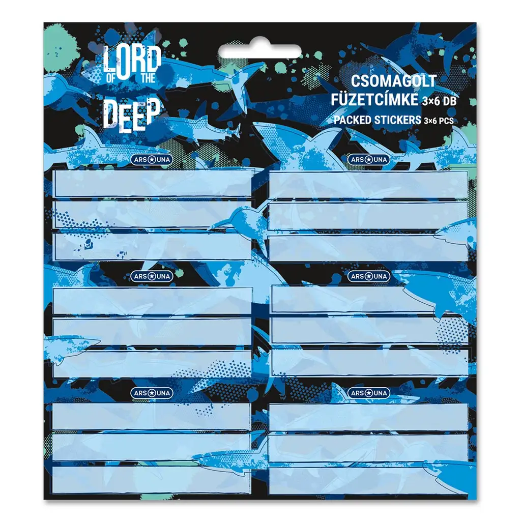Ars Una "Lord of the Deep" set naljepnica za sveske s motivom morskih pasa omogućuje ljubiteljima dubokomorskih avantura da učine svoje školske potrepštine jedinstvenima. Pojava morskih pasa koji plivaju pred plavom pozadinom oceana donosi uzbudljivu atmosferu u svakodnevicu. Paket sadrži 3 lista, svaki s 6 naljepnica s morskim psima, ukupno 18 naljepnica, omogućujući da sveske budu ne samo prepoznatljive, već i spektakularne. Samoljepljive naljepnice lako se nanose i mogu se ukloniti bez ostataka kada više nisu potrebne. Zaronite u more učenja s ovim očaravajuće posebnim setom naljepnica za sveske!