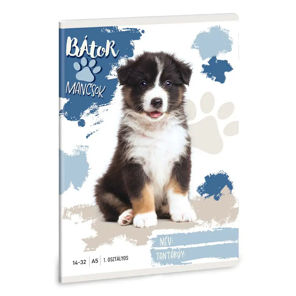 Ova bilježnica s crtama za prvi razred savršen je pratilac u prvim koracima učenja pisanja, posebno ako dijete voli pse. Na naslovnici se nalazi simpatično, prijateljski nastrojeno štene australskog ovčara, koje svojim nasmiješenim pogledom ohrabruje vaše dijete na učenje i savladavanje novih izazova. Moderan dizajn s plavim i bež mrljama i otiscima šapa stvara veselu i prijateljsku atmosferu, zbog čega bilježnica nije samo praktična, već i izvor radosti za male školarce.