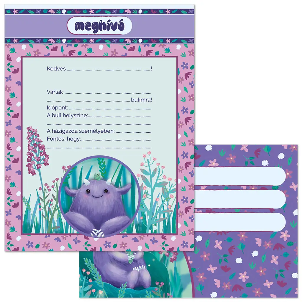 Ako želite slatku, veselu i bajkovitu pozivnicu koja savršeno odgovara čarobnoj rođendanskoj zabavi ili nekoj drugoj posebnoj prigodi, onda je ovaj paket ljubičastih pozivnica s čudovištem izvrstan izbor!