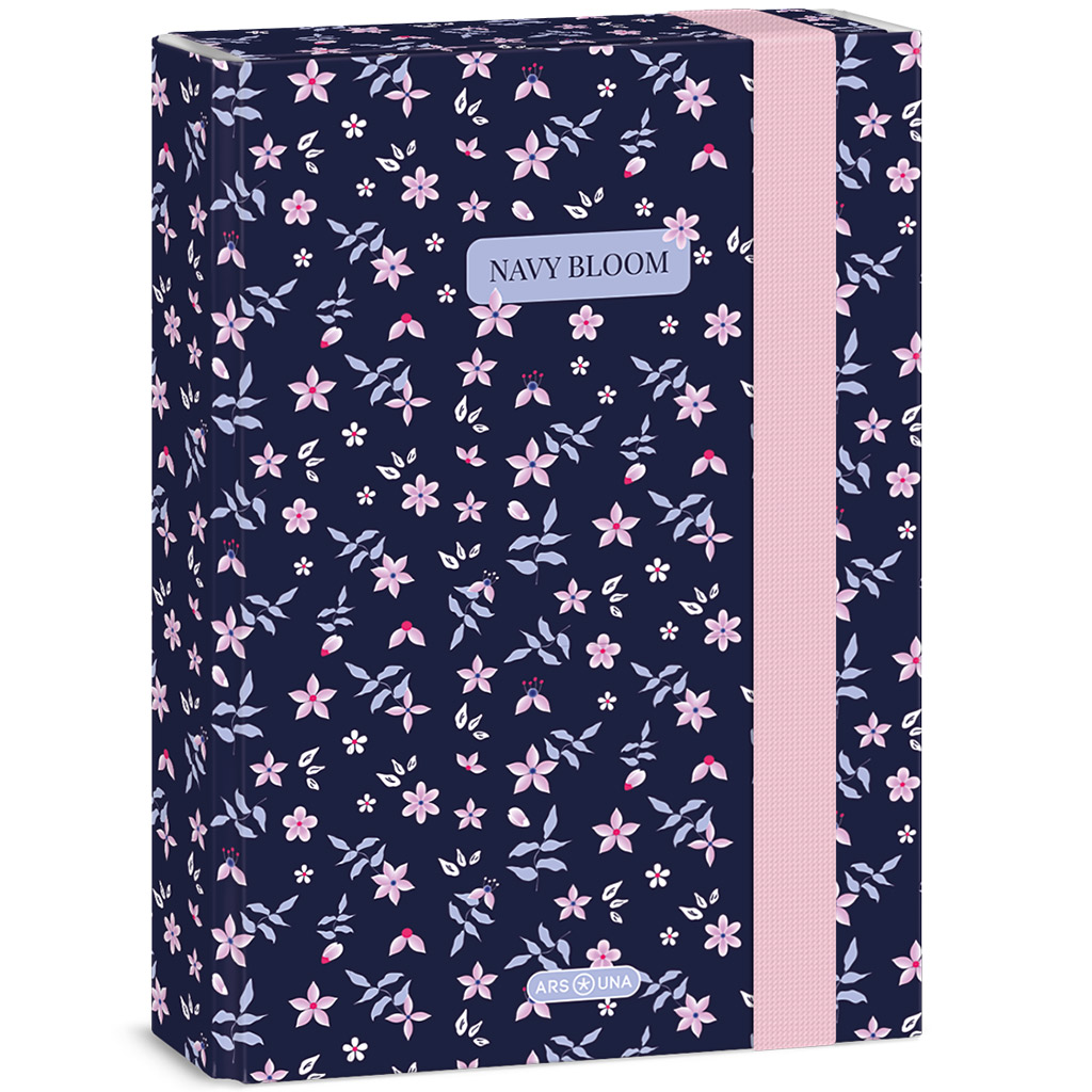 Ars Una: Navy Bloom cvjetna kutija za bilježnice A/5 odličan je izbor ako želiš školsku opremu svog djeteta držati stilski i uredno. Na tamnoplavoj podlozi fini, sitni cvjetni uzorci daju zaista elegantan izgled, a pritom ne moraš odustati od praktičnosti. Izdržljiv, čvrsti karton štiti bilježnice i važne dokumente od gužvanja, tako da oni uvijek ostanu uredni i u torbi. Zatvaranje s gumicom osigurava da iz njega ništa ne ispadne tijekom dana. Idealan izbor za školu, izvannastavne aktivnosti ili čak za organizaciju kod kuće.