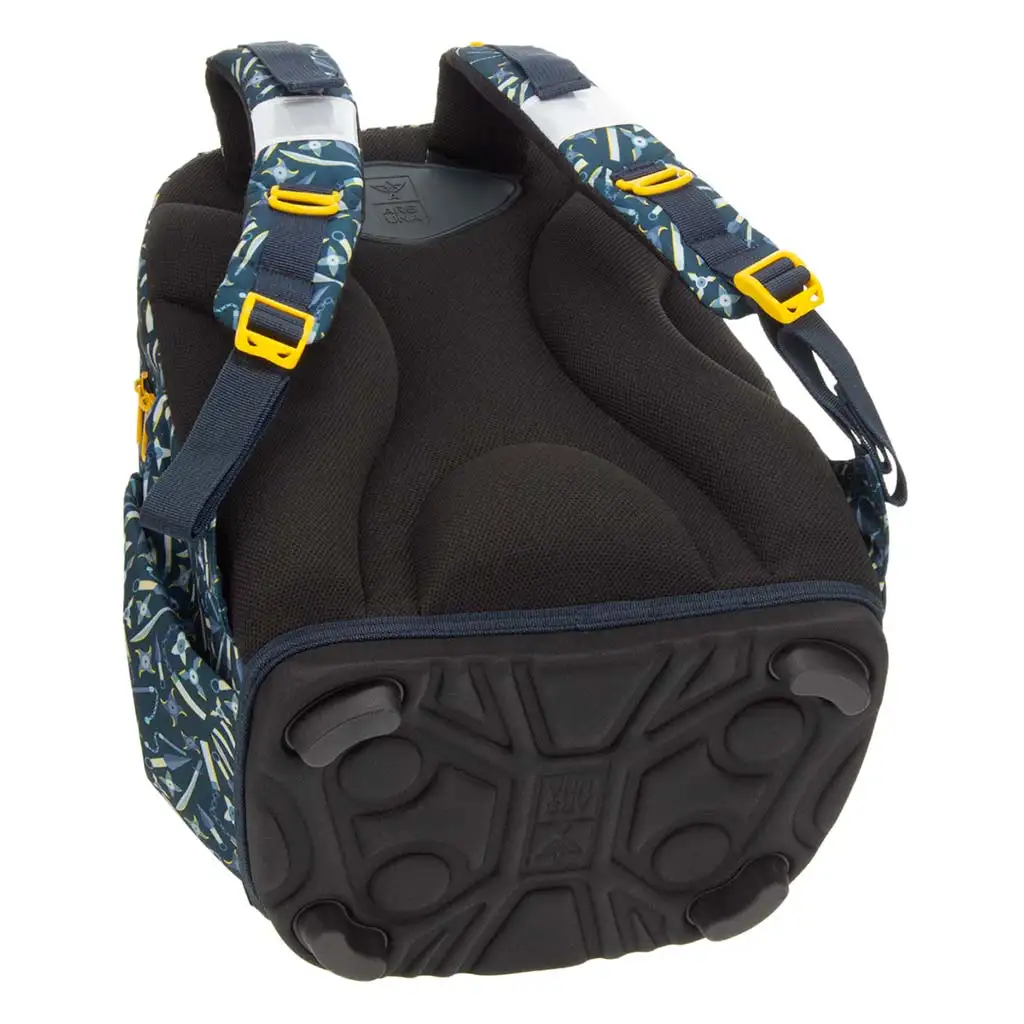 Težina ruksaka je samo 0,9 kg, pa je prikladan za djecu i lako se nosi. Tri prostrana pretinca na zatvarač pomažu u organizaciji: u najvećem pretincu nalazi se tekstilna pregrada, a u najmanjem ušiveni držač za olovke i držač za iskaznicu. S obje strane nalazi se elastični džep za bočicu ili druge sitnice. Donji dio izrađen je od izdržljive tkanine, a od oštećenja ga štite 4 plastična stopala, dok reflektirajući elementi povećavaju sigurnost u mraku.