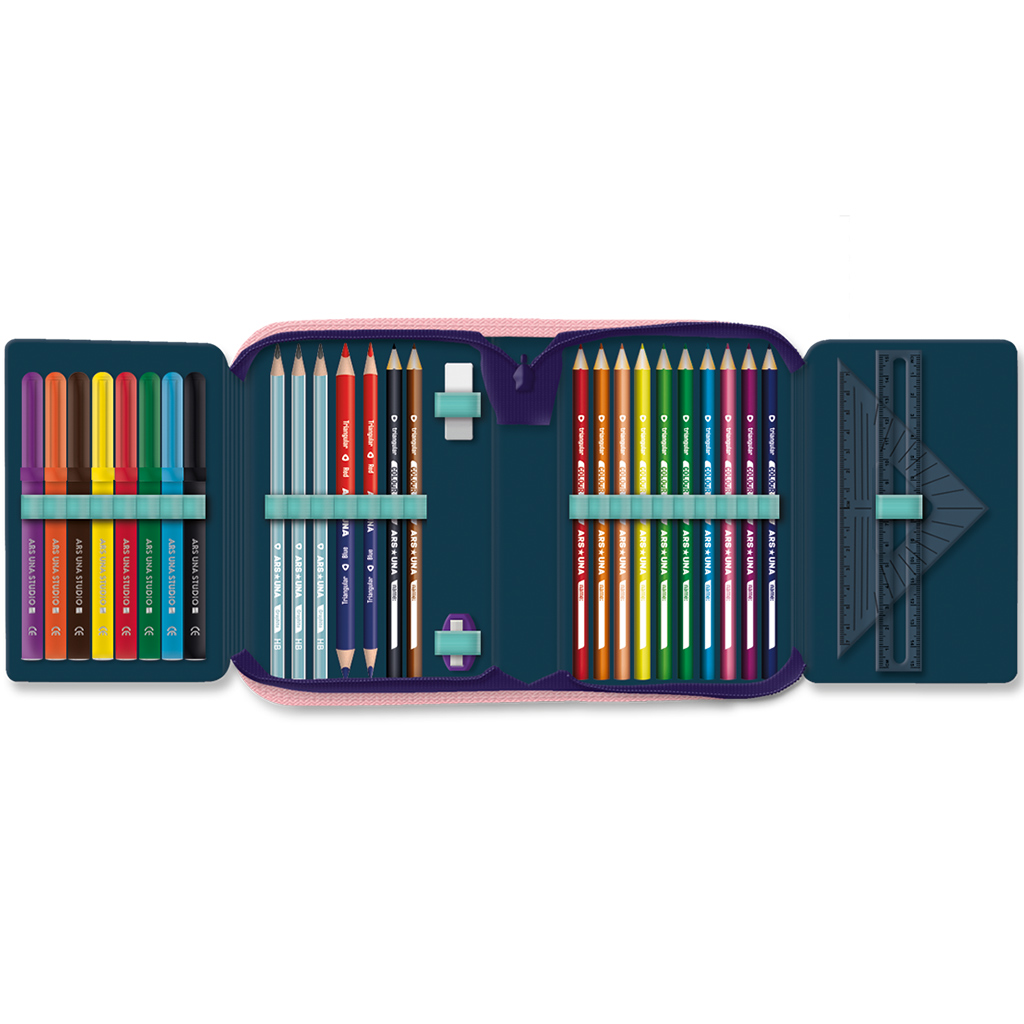 Napunjena pernica Ars Una Northern Lights savršen je izbor ako za svoje dijete tražite zaista praktičan i upečatljiv školski dodatak. Mistični uzorak s vukovima stvara čarobnu atmosferu koja će zasigurno osvojiti srca najmlađih. Pernica je potpuno opremljena, pa se svi važni pisaći pribori mogu držati na jednom mjestu, uredno. Trokutaste obojane olovke pružaju udoban hvat, dok bogat sadržaj potiče kreativno izražavanje i svakodnevno učenje. Zahvaljujući izdržljivoj izradi, pouzdan je partner u školi i na duže staze.