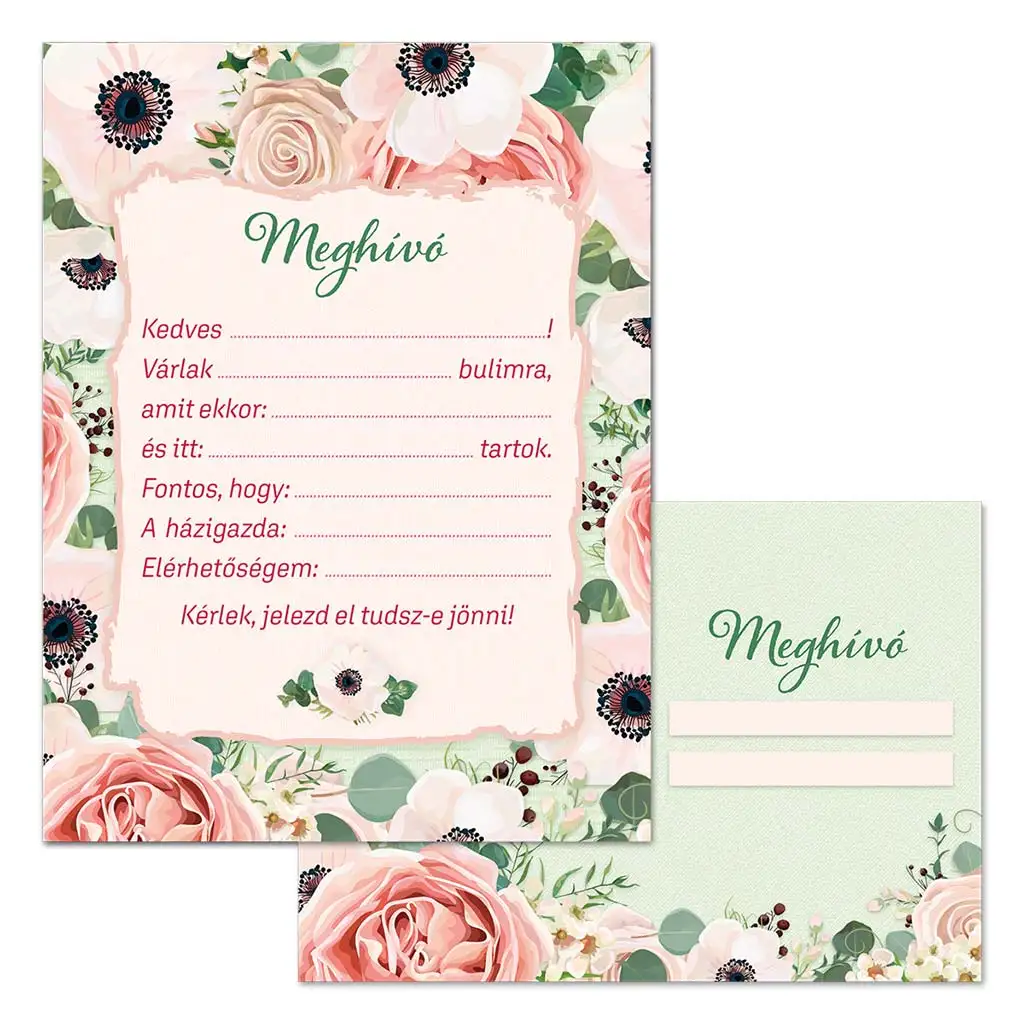 Ova pozivnica za zabavu s motivom ruža odiše pravom elegancijom i savršen je izbor za posebne događaje, poput rođendanske proslave, krštenja ili čak za stilsko najavljivanje druženja s prijateljima. Pozivnicu krase pastelne nijanse ruža, makova i zelenog lišća, koji nježno uokviruju tekstualno polje smješteno u sredini. Klasičan, a opet šarmantan dizajn oduševit će sve uzraste.