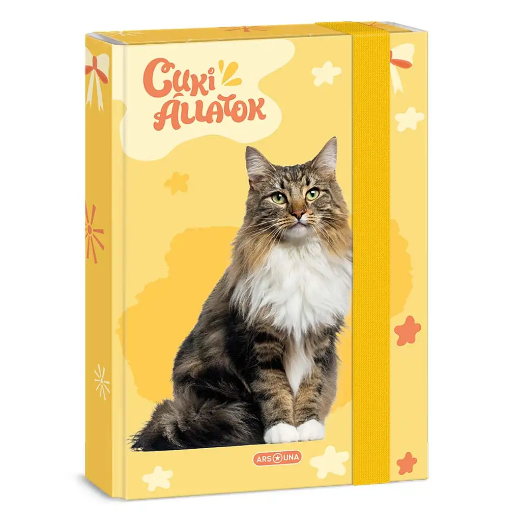 Cuki kutija za bilježnice s motivom norveške šumske mačke formata A/5 savršen je izbor za sve male ljubitelje životinja koji vole mačke – posebno elegantne norveške šumske mačke s gustom dlakom. Na prednjoj strani kutije nalazi se zaista dostojanstveno izgleda mačka koja znatiželjno promatra svojim očima, što će sigurno osvojiti srca djece. Žuti, cvjetni i razigrani dizajn odiše pozitivnim, veselim raspoloženjem, pa će svaki dan izmamiti osmijeh na lice djeteta koje kreće u školu.