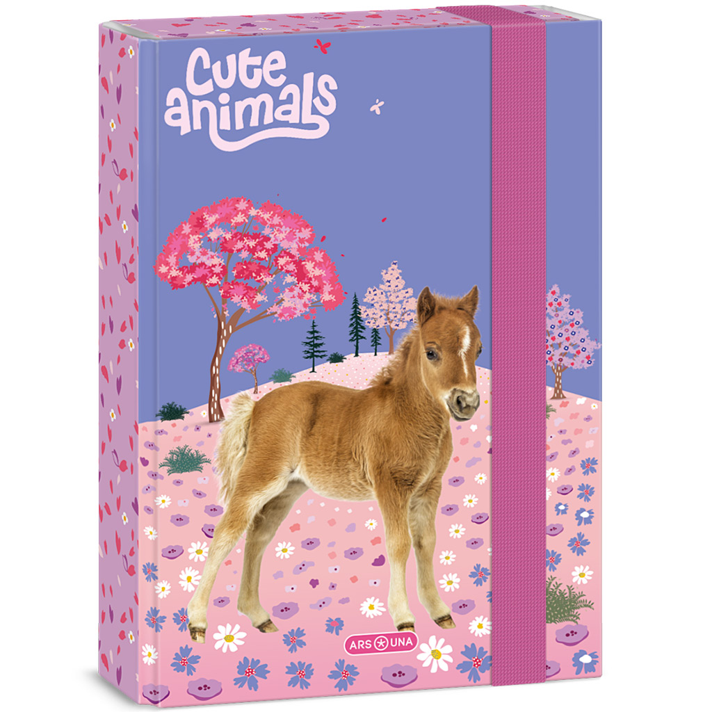 Ars Una: Cute Animals – Horse kutija za bilježnice A/5 savršen je izbor ako tvoje dijete obožava konje i nježne, bajkovite uzorke. Preslatko ždrijebe i cvjetni, proljetni krajolik stvaraju veseo i umirujući ugođaj, što svakodnevnu školsku upotrebu čini radosnijom. Izdržljiva tvrda kartonska korica učinkovito štiti bilježnice i dokumente od gužvanja i oštećenja. Elastična gumica osigurava da sve ostane na mjestu, pa je praktično i stilsko rješenje i za školu i za dom.