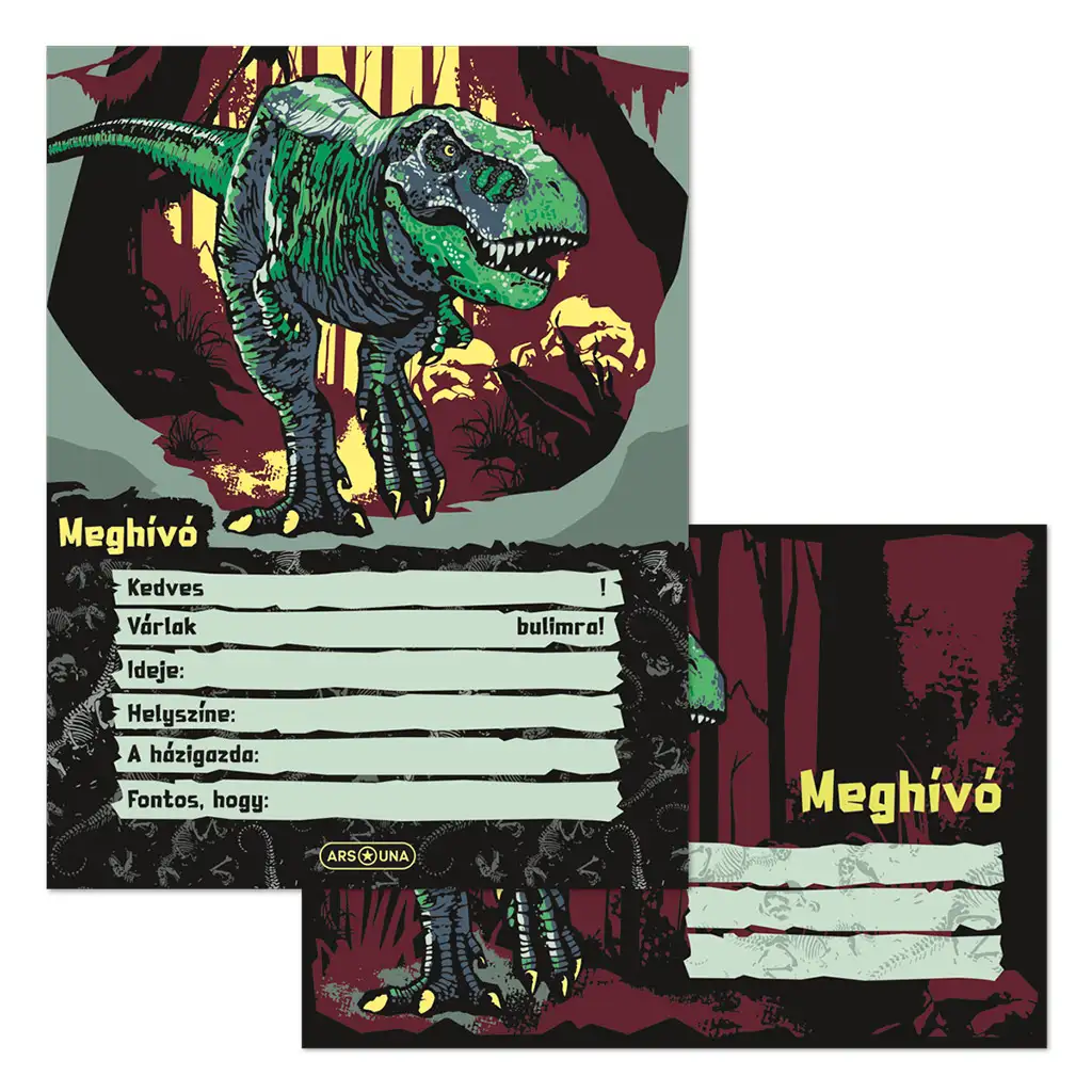 Set pozivnica za zabavu kolekcije Ars Una T-Rex savršen je izbor za cool zabavu s dinosaurima! Ove pozivnice nisu samo nositelji informacija, već pozivaju na pravu avanturu svakoga tko ih primi.