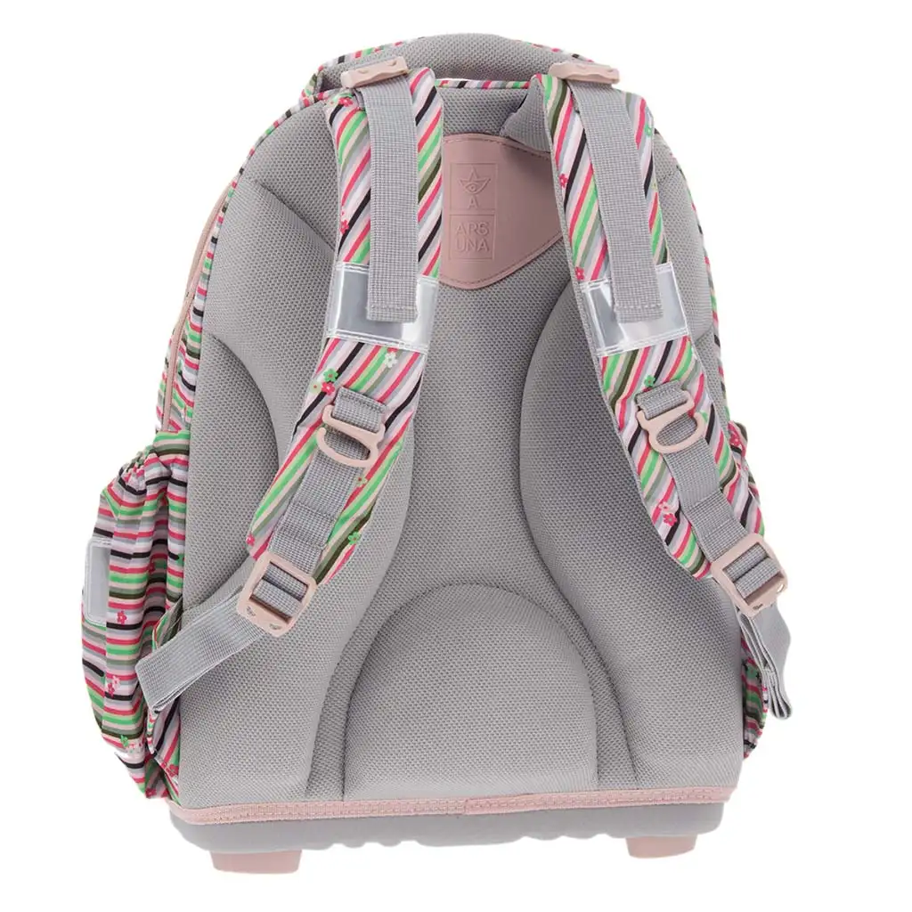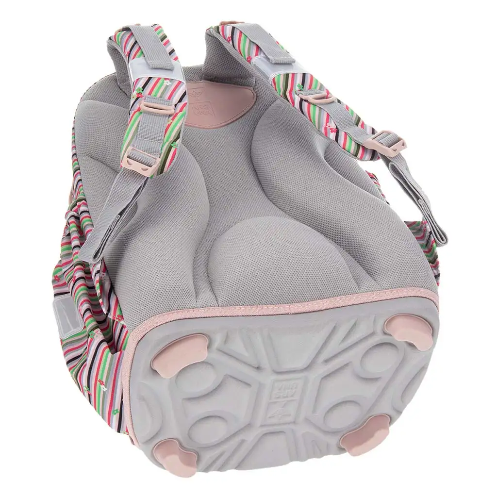 Ruksak nije samo prekrasan, već je izuzetno udoban i funkcionalan. Prijateljski dizajn za kralježnicu, debelo podstavljen stražnji dio i podstavljen pojas za kukove omogućavaju cjelodnevnu udobnost. Meke naramenice mogu se podešavati na više mjesta, tako da savršeno pristaju dječjem tijelu. Čvrsto dno štite četiri plastične nožice, pa se torba ne oštećuje lako kada je na podu. Tri prostrana pretinca omogućuju da svo školsko pribor bude organiziran, u najvećem pretincu nalazi se tkaninska pregrada, a u najmanjem držač za pribor i džep za iskaznicu. Dva elastična bočna džepa idealna su za bocu za vodu ili sitnice, a reflektirajući elementi osiguravaju sigurnost u prometu.