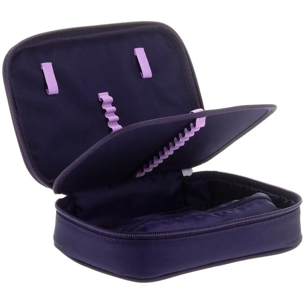 Unutarnji raspored je remek-djelo organizacije: elastični držači za najčešće korištene alate – olovke, pribor za crtanje, ravnalo – te praktičan džep na patent za sitnice poput gumice, šiljila ili papirića. Drugi sloj ispod poklopca nudi dodatni prostor za pohranu, tako da sve što je potrebno za školske dane stane na jedno mjesto.