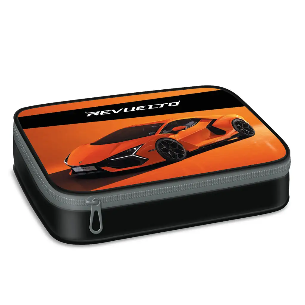 Ako tvoje dijete voli brzinu, trkaće aute i cool dizajn, ovaj višeslojni pernica s motivom Lamborghinija sigurno će mu se svidjeti! Na naslovnici se nalazi upečatljiv, narančasti Lamborghini Revuelto model, što ga čini ne samo stilskim, već i inspirativnim za male zaljubljenike u autiće. Ova pernica nije samo atraktivnog izgleda, već je i izrazito praktična – tri odvojena sloja omogućuju dovoljno prostora za sve potrebne školske potrepštine, tako da dijete lako može organizirati olovke, flomastere, gumicu, ravnalo i sve sitnice. Izdržljivi patentni zatvarači lako se otvaraju i zatvaraju, a čvrsti materijal presvlake dugotrajno podnosi školsku upotrebu. Ova pernica nije samo praktičan školski pribor, već i fora dodatak koji osvježava školsku torbu i svakodnevno donosi veselje.