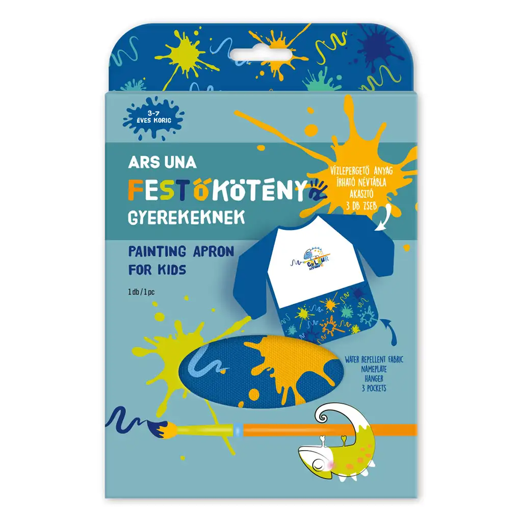 Blue Splash dugačka pregača s rukavima idealan je izbor za svako kreativno dijete koje voli slikati, crtati ili izrađivati! Ova pregača izrađena je od vodoodbojnog materijala koji štiti odjeću od mrlja od boje, ljepila i drugih nečistoća, tako da se vaše dijete može slobodno izražavati bez brige o mrljama. Dizajn s dugim rukavima pruža još potpuniju zaštitu, a tri džepa na dnu pregače savršena su za spremanje kistova, olovaka ili malih blaga. Pregača ima i vješalicu na vratu za lako odlaganje, a natpisna pločica omogućuje upisivanje imena, pa se nikada neće zamijeniti u vrtiću ili školi. Vesela plava boja s raznobojnim mrljama i figurom male kameleona čini kreativni rad još zabavnijim!