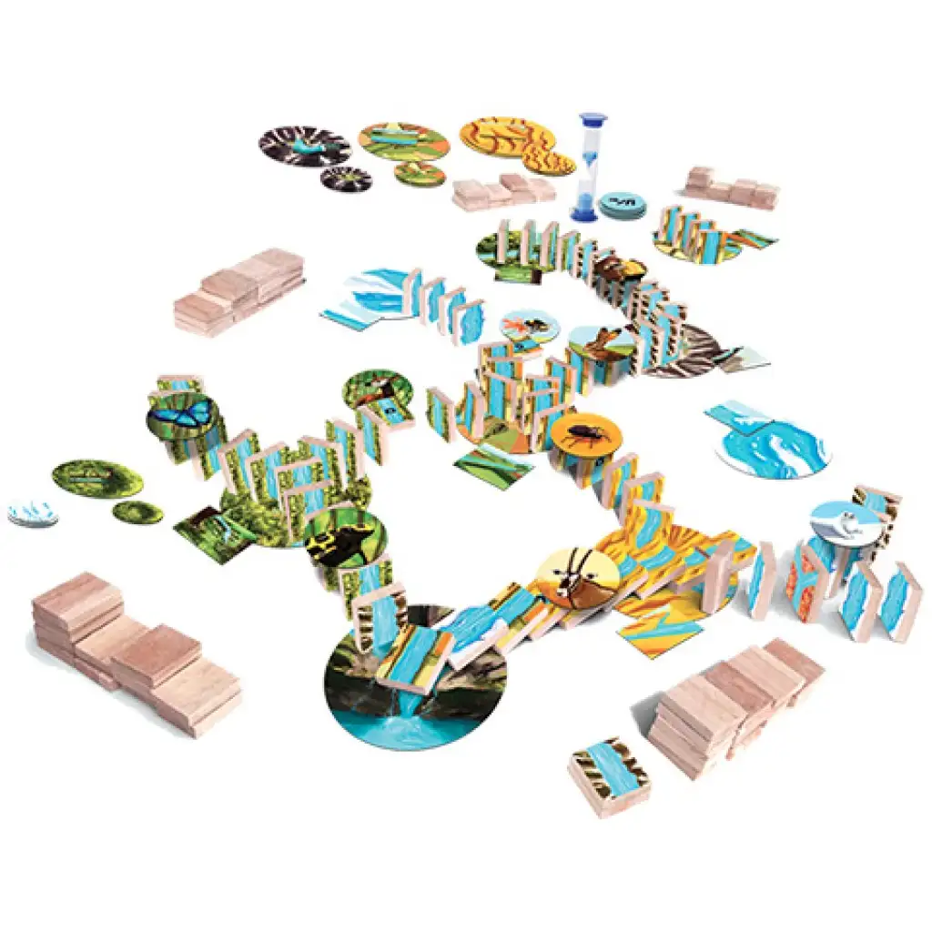 Ako se upustiš u društvenu igru Aya, možeš doživjeti izvanredno putovanje, jer igra uključuje raznolike, zadivljujuće krajolike i posebne životinje koje možeš vidjeti dok prolaziš stazom. Budi pametan i surađuj sa svojim suigračima kako bi napravio najbolju fotografiju koju možeš podijeliti o ovoj izvanrednoj avanturi! U igri Aya, cilj je surađivati sa svojim suigračima kako bi prikupili što više pločica krajolika i žetona s fotografijama životinja, koje zatim treba postaviti okomito, ne previše udaljene jedna od druge, baš kao domine. Na kraju igre, one će se jasno srušiti jedna na drugu, slično kaskadnom vodopadu, otkrivajući prekrasan krajolik i životinje. Stvaraj i otkrivaj svaki put novi svijet dok igraš s obitelji i prijateljima.