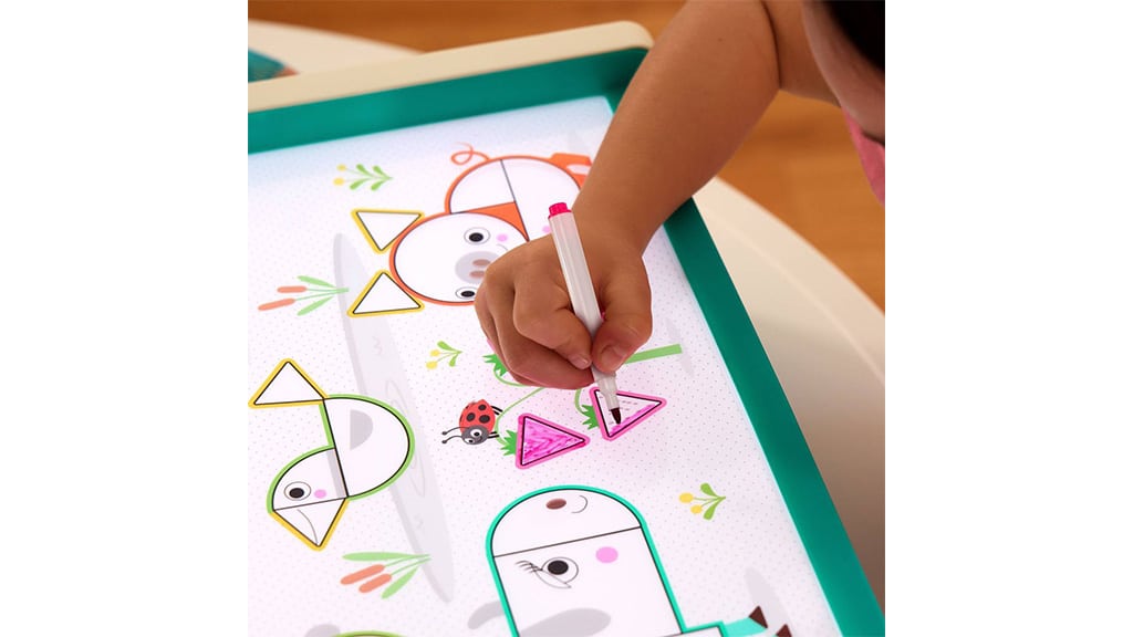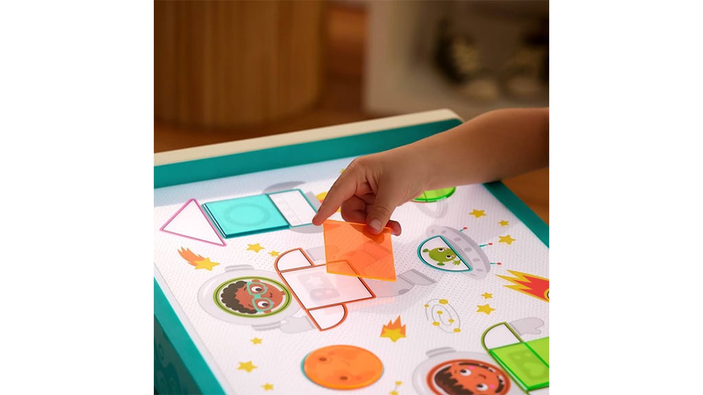 Obitelji mogu potaknuti djecu da uče izvan učionice uz pomoć Look & Shine Light Box seta za igru. Ovaj set od 71 dijela sadrži više od 60 dodataka za učenje, uključujući 50 šarenih brojeva i oblika, pet suho brisivih flomastera s gumicom te tri zamjenjive prozirne bojanke. Uređaj radi na baterije ili USB-C, te nudi pet svjetlosnih boja i dvije postavke svjetline.