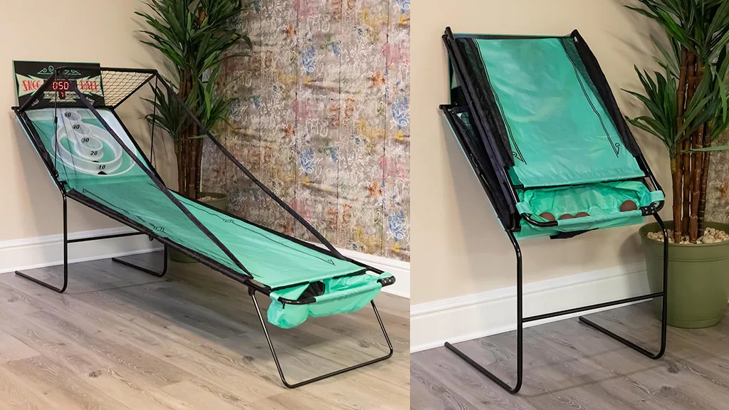 Prošle jeseni održali smo našu godišnju uličnu zabavu, a dvije najveće atrakcije bile su igre EastPoint Sportsa: Giant Connect 4 i Skee-Ball Frame Game! Djeca iz susjedstva, od kojih mnogi nikada prije nisu igrali Skee-Ball, odmah su se navukla i čekala u redu da isprobaju. Bila je toliko popularna atrakcija da su me susjedni roditelji zamolili da je ponovno donesem na našu Halloween zabavu (i učinio sam to!).Uz rastuću popularnost kućnih arkadnih igara i igraonica, ovaj Skee-Ball Frame Game je odličan izbor koji se sklopljen može nasloniti na zid pored ormarića za pohranu u kućnoj arkadi. Kada ste spremni za igru, jednostavno rasklopite tunel i pripremite se za bacanje!