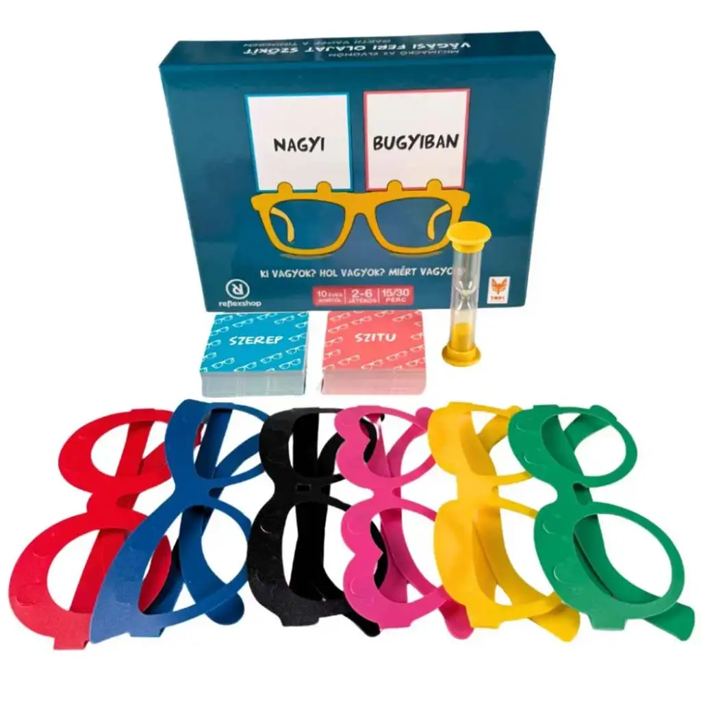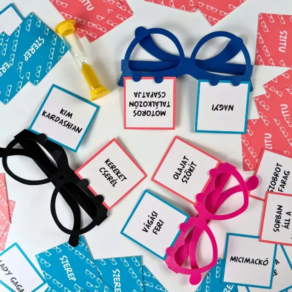 - Sadržaj kutije: 50 kartica s ulogama, 50 kartica sa situacijama, 24 prazne kartice, 6 naočala, 1 pješčani sat, 1 knjižica s pravilima