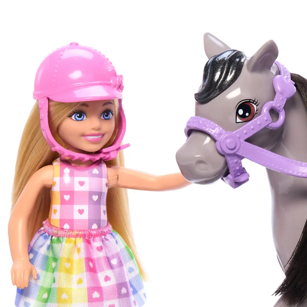 Na jahanje! Barbie: Chelsea i poni konjić igraći set ostvaruje snove svakog djeteta koje voli konje i avanturističke igre. U setu Chelsea, neodoljiva Barbiena mlađa sestra, sjedi na svom poniju u veslom, ružičastom sedlu, spremna za nova otkrića. Posebnost ove lutke je što joj se koljena mogu savijati, pa zbilja može „jahati” kada ju stavite na konja – noge savršeno pristaju u stremene, što igri daje dodatnu dozu stvarnosti.
