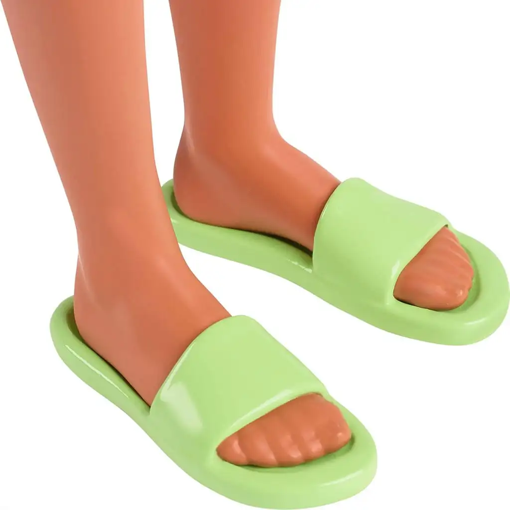 Dopusti da Kenov jedinstveni, ljetni stil unese svježinu u Barbie svijet! Ova posebna Barbie Fashionistas Ken lutka s modernim i svježim izgledom odmah se ističe u gomili. Ken figura nosi živopisnu koraljnu haljinu s havajskim uzorkom, koja je savršen izbor za tropski odmor ili opušteno, sunčano poslijepodne. Prikladne limeta zelene sandale daju mu moderan i lagan stil, dok detaljno izrađena pletena smeđa kosa osigurava moderan i realističan izgled.