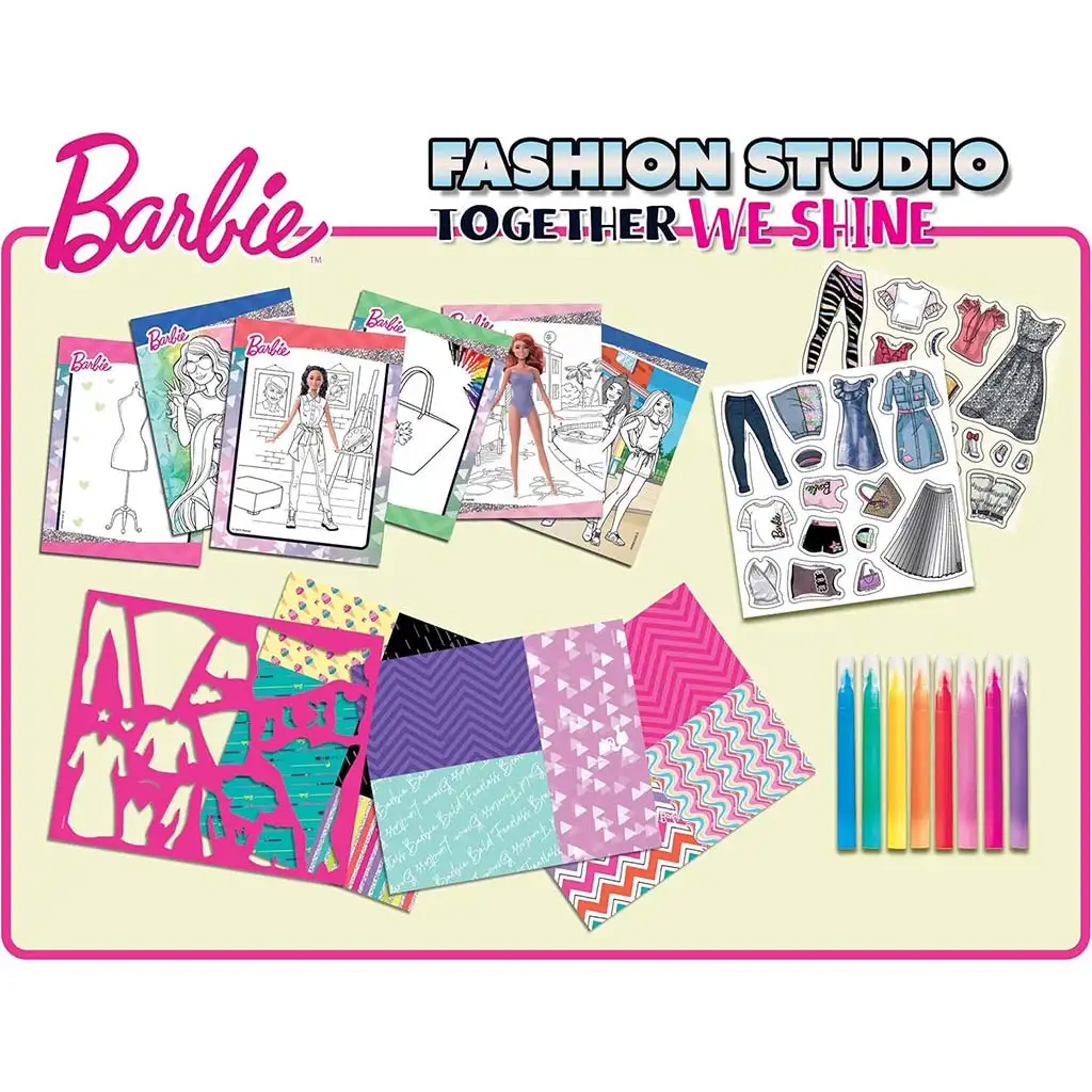 Barbie Together We Shine set za bojanje i oblačenje san je svakog malog ljubitelja mode! U ovom posebnom, višedijelnom kreativnom studiju, djeca ne samo da mogu bojati, već i osmisliti vlastitu Barbie kolekciju kao pravi modni dizajneri. Set sadrži bojanku i crtaći blok, modernizirane Barbie likove, predloške za odjeću, šarene uzorkovane papire, izrezive naljepnice, kartice sa stilskim savjetima te flomastere, kako bi kreativne ideje odmah mogle zaživjeti. Zahvaljujući raznovrsnim materijalima i teksturama, djeca kroz igru istražuju svijet mode, razvijajući pritom svoju spretnost, maštu i sposobnost izražavanja.