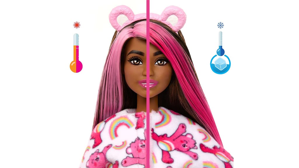 Ova posebna serija kombinira svijet Barbie i Medvjedića Dobrića, pružajući obožavateljima zaista jedinstveno i šareno iskustvo. Kolekcija sadrži različite likove, od kojih svaki predstavlja jedinstveni stil i osobnost. Za kolekcionare i obožavatelje Barbie, ova serija nudi neizostavnu priliku za proširenje svoje kolekcije i doživljavanje novih avantura.Ova kolekcija Cutie Reveal sadrži tri popularna prijatelja Care Bears: Share Bear, Cheer Bear i Grumpy Bear. Dostupna za Barbie i Chelsea lutke, svaka Cutie Reveal uključuje iznenađujuće dodatke i transformacije aktivirane vodom. Ove posebne lutke mogu biti omiljene ne samo djeci, već i uzbudljivi komadi za kolekcionare. Među iznenađujućim dodacima mogu biti odjeća, cipele ili čak nakit, koji čine igru još čarobnijom. Transformacije aktivirane vodom pružaju poseban doživljaj, jer se izgled lutki mijenja kada dođu u kontakt s vodom, nudeći djeci nove i nove avanture.