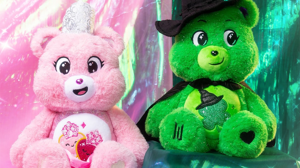 Basic Fun! Gondos bocsok x Wicked 2-dijelni set sadrži dva posebna plišana medvjedića: Good Luck Bear i Love-a-Lot Bear, koji su odjeveni kao omiljene vještice tvoje obitelji. Love-a-Lot Bear spreman je za čaroliju u ružičastoj naboranoj suknji, srebrnoj kruni od filca – koja podsjeća na Glindinu krunu – i sjajnim ružičastim ušima. Na trbušnom Belly Badge-u prikazana su dva ružičasta srca, svako s vlastitom krunom od mjehurića. Good Luck Bear kreće na put u crnom plaštu i mekanom crnom Elphaba šeširu, koji savršeno odgovara šeširu na njegovom Belly Badge-u s djetelinom s četiri lista. Na stopalima oba medvjedića nalazi se Wicked "W" logo i izvezeno srce, a ukrašeni su i srebrnim čupercima krzna. Ovaj poseban set savršen je poklon ne samo za obožavatelje Gondos bocsok, već i za ljubitelje mjuzikla Wicked, jer detaljna izrada i tematska odjeća čine plišance zaista jedinstvenima. Medvjedići su izrađeni od visokokvalitetnih materijala, pa su idealan izbor za grljenje i igru, kako za kolekcionare, tako i za djecu.