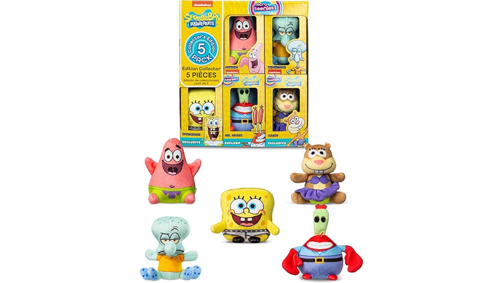 U kolekciji plišanih figura Micro Teenies Spužva Bob mogu se pronaći Spužva Bob, Patrik, Gospodin Raki, Sandy i Lignjoslav. Ove simpatične i detaljno kidjelane plišane igračke savršene su za svakog obožavatelja koji želi svoje omiljene likove ponijeti sa sobom bilo kamo. Svaki član serije ima jedinstven izgled i slatku, preciznu izradu, pa su odličan izbor i za kolekcionare i za djecu.Ove plišane igračke savršene su veličine da ih možeš ponijeti sa sobom na putovanje, jer se lako smjeste u ruksak ili drugu torbu, a da ne zauzimaju previše mjesta. Osim toga, super su mekane, pa ih djeca mogu udobno koristiti tijekom dužih vožnji automobilom, u avionu ili tijekom bilo koje druge avanture gdje je prostor ograničen. Paket sadrži svih pet likova, tako da će djeca sigurno pronaći svog favorita u ponudi. Ove plišane igračke nisu samo praktične i udobne, već i donose radost mališanima, bilo kod kuće ili na putu.