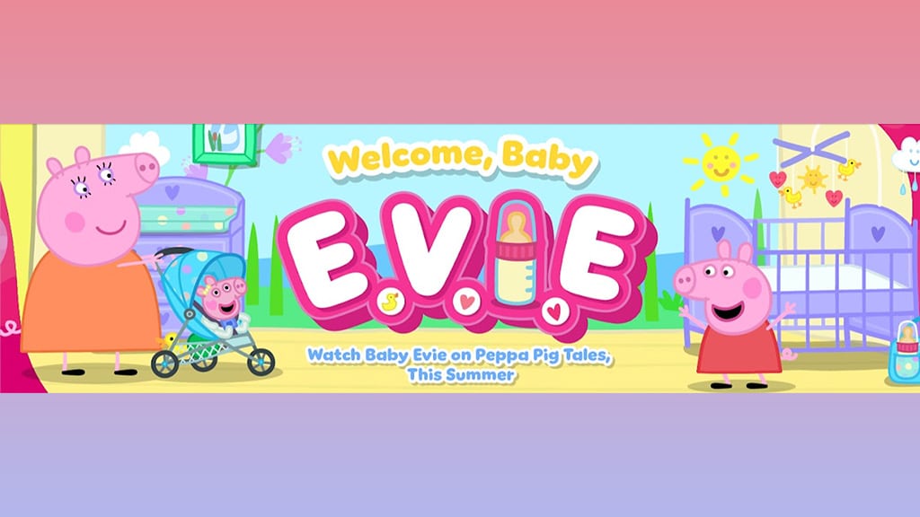 Svinjske vijesti! Baby Evie od danas, 4. kolovoza, pojavljuje se na ekranima s premijerom 10. sezone Peppa Piga na kanalu Nickelodeon. Iako je ovo prvi put da se Baby Evie pojavljuje na televiziji, svijet ekrana joj nije nepoznat, jer je već debitirala i na filmskom platnu u filmu Peppa upoznaje bebu: Kino doživljaj. Dolazak Baby Evie donosi nove uzbudljive avanture za obožavatelje serije i sigurno će donijeti puno radosti djeci i obiteljima diljem svijeta. U novoj sezoni gledatelji mogu očekivati još više zabavnih i poučnih priča, gdje Peppa i njezina obitelj upoznaju nove prijatelje i zajedno otkrivaju svijet.
