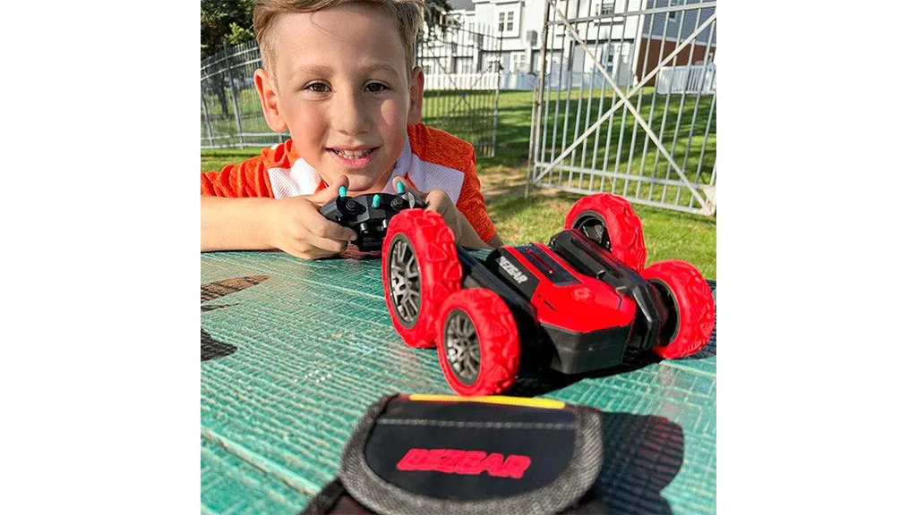Ovaj kaskaderski automobil ima glazbene i svjetlosne efekte, kao i mogućnost rotacije od 360 stupnjeva za dvosmjerno trkanje, tako da djeca mogu driftati i okretati R/C automobil kao da se vrti poput tornada. Otporan na sudare, automobil također ima gume otporne na proklizavanje za čvrsto prianjanje unutra ili vani.