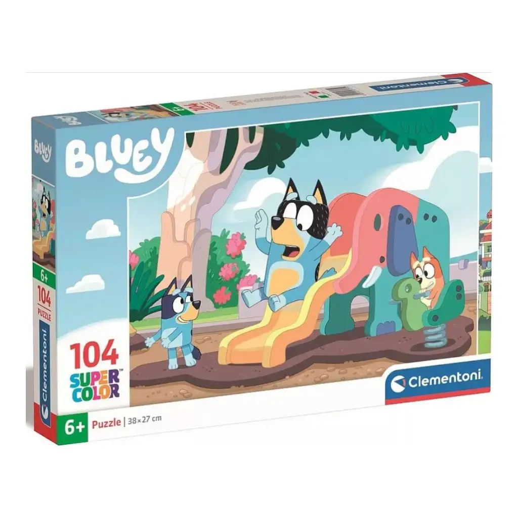 Clementoni Bluey pas klizi puzzle je zabavna i odlična edukativna igra koja je napravljena u skladu s popularnom televizijskom serijom Bluey. Puzzle se sastoji od 104 dijela, a na složenoj slici možemo vidjeti psa Bluey kako klizi niz tobogan na igralištu. Na donjem dijelu ga čeka drugi veseli plavi pas prijatelj koji se želi pridružiti zabavi i igri.