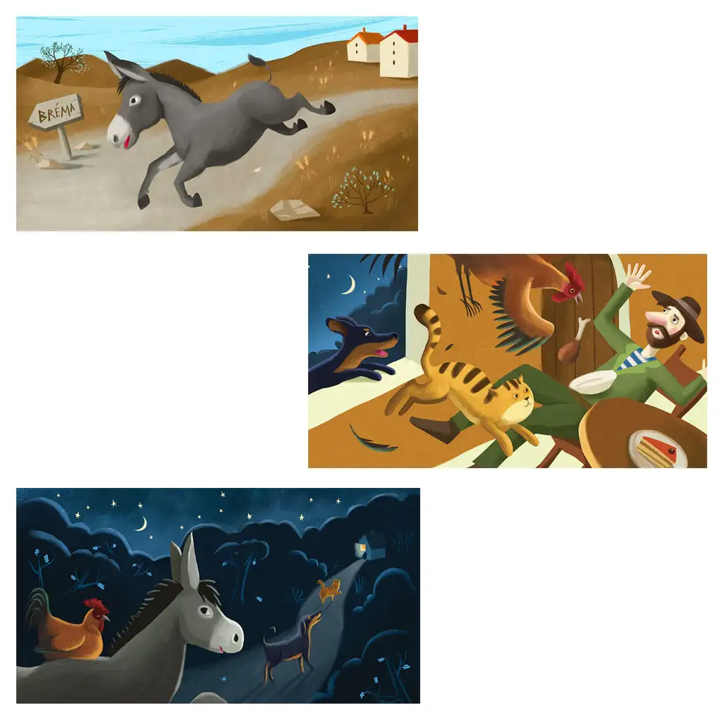 Ponovno otkrijte ovaj bajkoviti roman zahvaljujući kreativnim djelima Ildi Horvath i dopustite da crteži Bremenskih muzičara ožive ikonične likove!