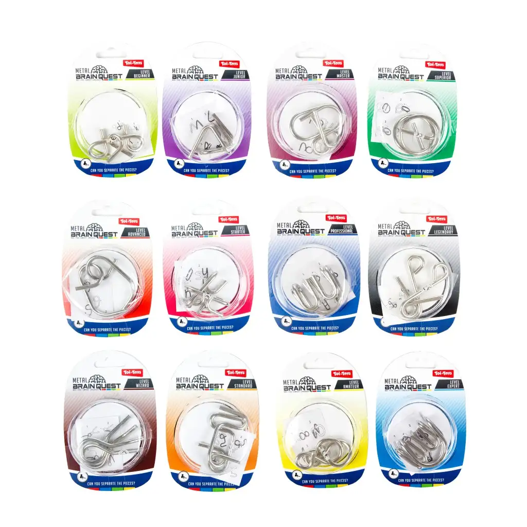 Stavi svoj um na kušnju s Brain Quest zagonetkama! Ove posebne metalne zagonetke idealne su za sve uzraste koji vole logičke izazove. Brain Quest zagonetke dostupne su u različitim razinama težine, tako da početnici i napredni mogu pronaći odgovarajući izazov. Cilj se čini jednostavnim: razdvojiti metalne dijelove, a zatim ih ponovno sastaviti – ali to je mnogo veći izazov nego što se čini na prvi pogled!