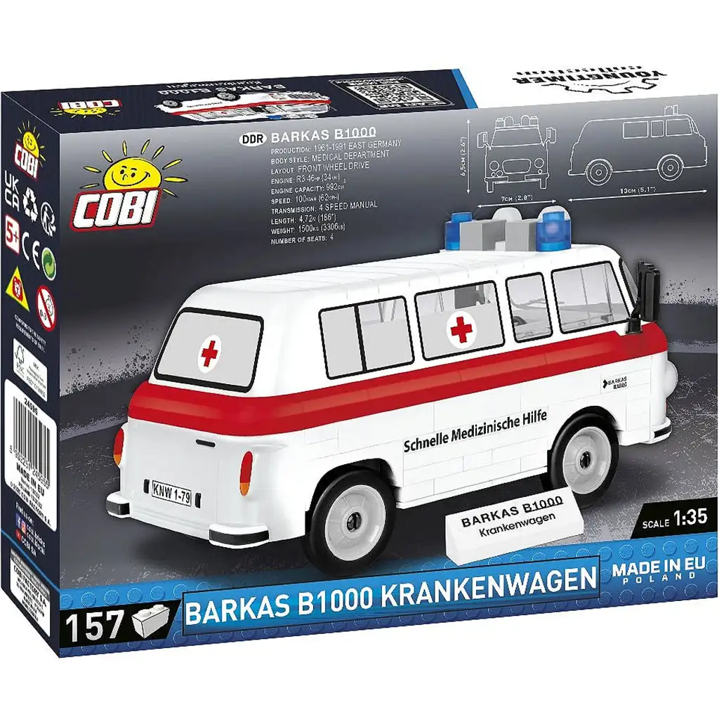COBI Barkas B1000 igračka za slaganje ambulantnog vozila oživljava jedan od najpoznatijih automobila istočnonjemačke automobilske industrije, izrađen od građevnih kockica. Model u mjerilu 1:35 sastoji se od 157 visokokvalitetnih dijelova, koji precizno prikazuju klasični oblik i detalje ambulantne verzije vozila Barkas B1000. Posebnost ove igračke je što su svi grafički elementi otisnuti, tako da nema naljepnica koje bi se s vremenom mogle uništiti. Vozilo ima funkcionalne kotače koji omogućuju stvarno kretanje, pa je prikladno kako za izlaganje, tako i za aktivnu igru.