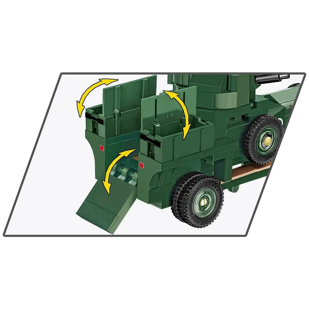 Set za slaganje izrađen je s bogatim detaljima: rotirajuća kupola s pokretnim mitraljezom, otvarajuća vrata i realistična izrada čine ga posebnim. Zahvaljujući izdržljivim i postojanim otiscima model će dugo zadržati svoj izvorni izgled, bez korištenja naljepnica. Set uključuje i figuricu britanskog vojnika, što čini igru s vozilom još zanimljivijom. Sastavljanje olakšava jasan i ilustrirani priručnik, tako da je proces gradnje zabavan za sve uzraste.