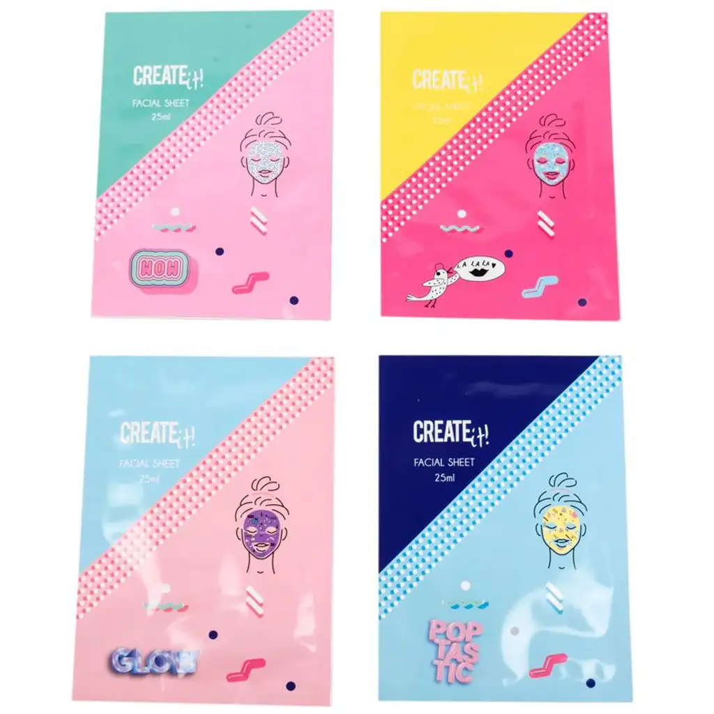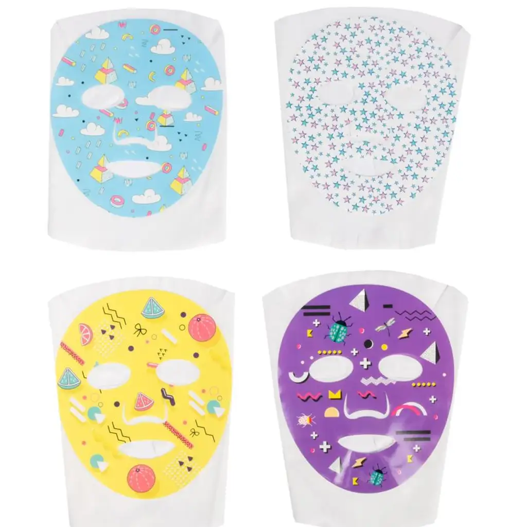 - 4 različite šarene, uzorkovane hidratantne maske za lice