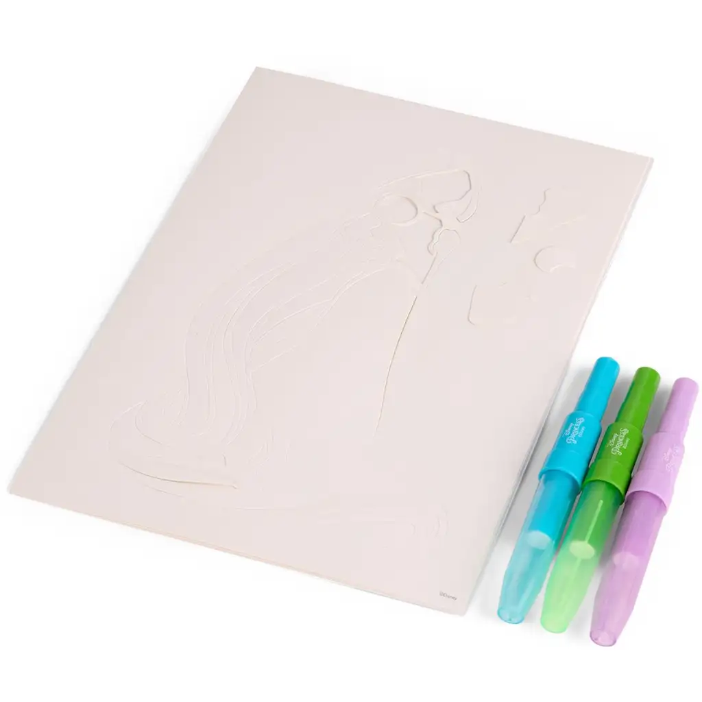 Pretvori bajkovite princeze u stvarnost jednim jedinim prskanjem! Disney Princeze set za bojanje s prskajućim flomasterima savršen je izbor za svaku kreativnu malu princezu koja voli stvarati i zaljubljena je u čarobni svijet Disneya. Ovaj uzbudljivi set nije samo klasična bojanka – uz tri posebna prskajuća flomastera i tri višekratne šablone, tvoje dijete može postići prave umjetničke efekte dok Rapunzel, Tiana i Vaiana oživljavaju na papiru.