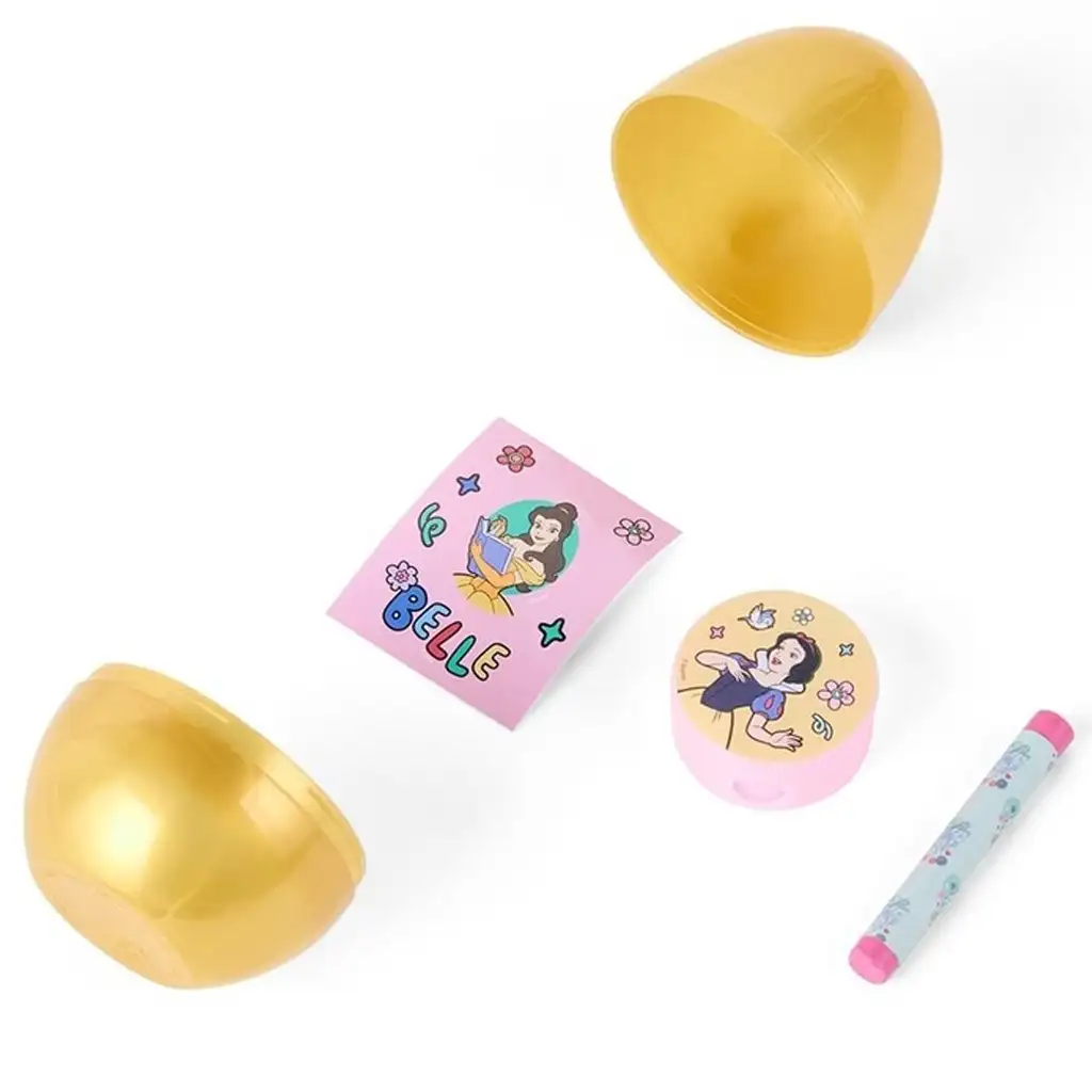 Svako jaje sadrži drugo iznenađenje, tako da ih možeš i sakupljati! U pakiranju možeš pronaći naljepnicu, mini pečat, olovku ili šiljilo – sve sa šarenim, princeza motivima koje će djeca obožavati. Ove male dragocjenosti nisu samo slatke, nego i praktične – mogu se koristiti u školi ili za crtanje i kreativno stvaranje kod kuće.