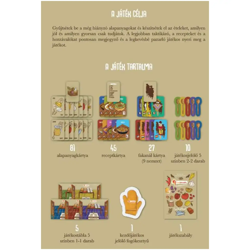 Zamislite da ste glavni kuhar u kuhinji u kojoj je cilj pripremiti najfinija jela – ali pobjeđujete samo ako mudro upravljate sastojcima! Društvena igra Chefparade uzbudljiva je i zabavna avantura za cijelu obitelj, gdje djeca i roditelji zajedno mogu naučiti pametno kuhati – kroz igru.