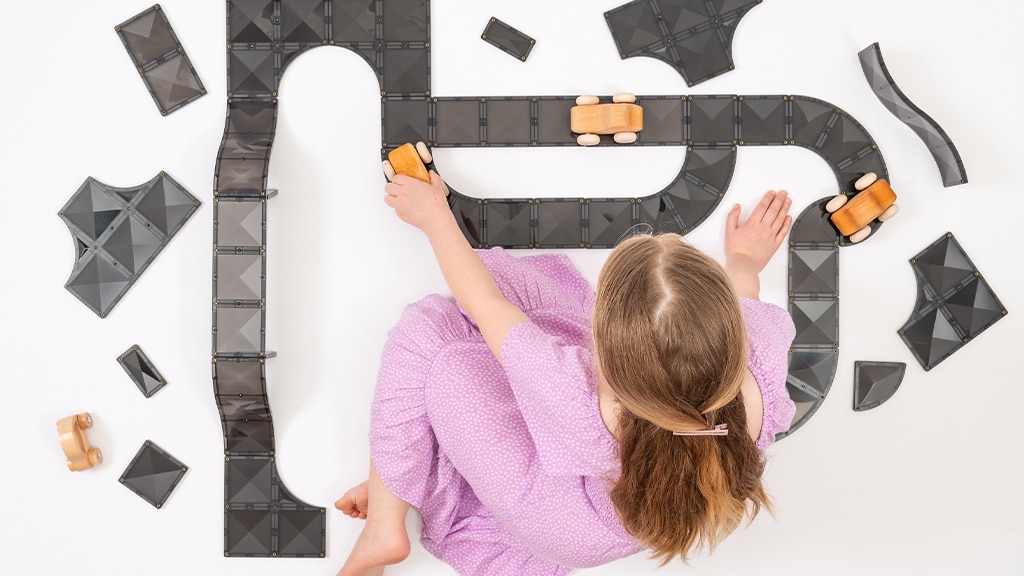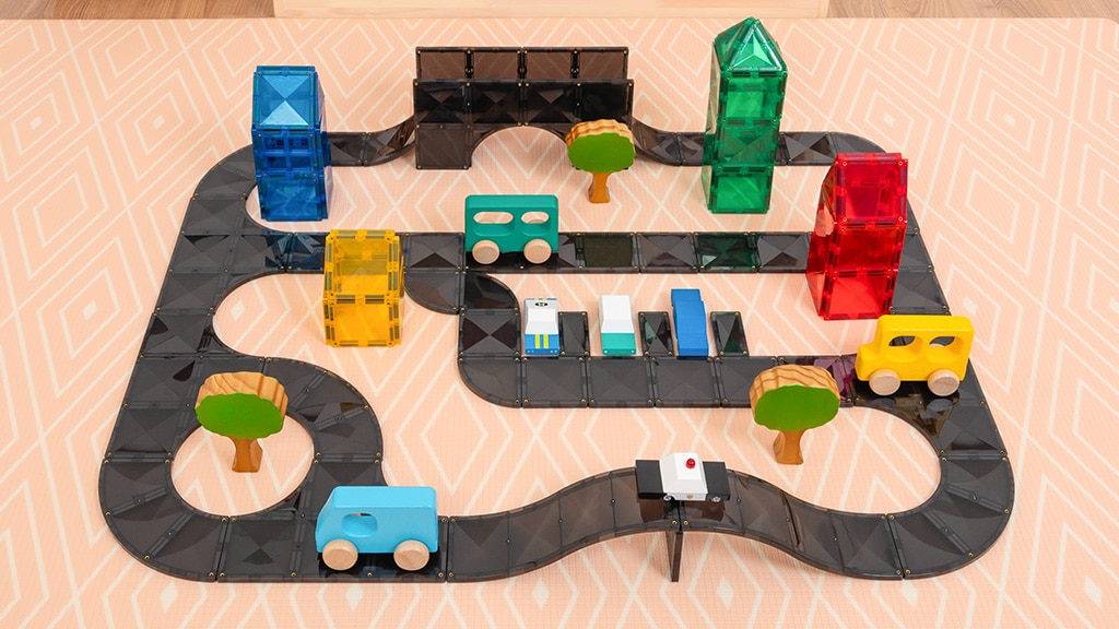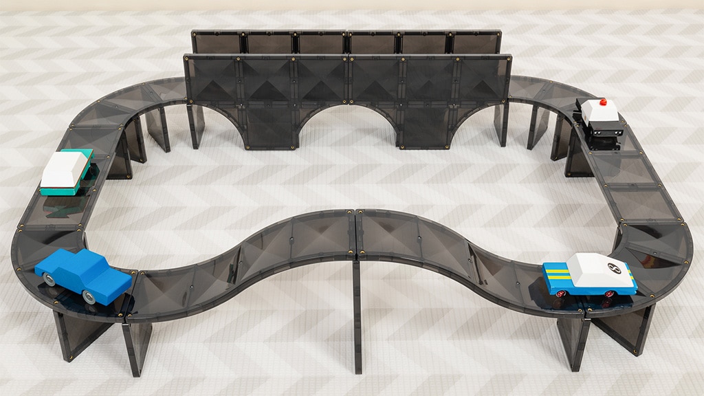 Ovaj set predstavlja elegantne crne pločice i nove oblike pločica u Connetix kolekciji. Inspirirane stvarnim cestama, ove nove magnetske pločice stavljaju dječju maštu na vozačko mjesto dok stvaraju jedinstvene staze za bilo koji autić. Osim tradicionalnih kvadratnih pločica, set sadrži lukove, raskrižja, četvrtine krugova, duge rampe i kratke rampe. Djeca mogu koristiti svih 48 dijelova za dizajniranje vlastitih jedinstvenih zračnih luka, skate parkova, gradova i još mnogo toga.