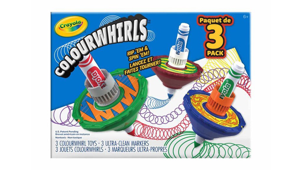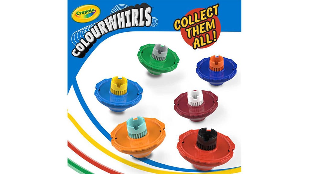 Colourwhirls podiže zabavu na novu razinu u tipičnim umjetničkim i zanatskim setovima. Prije nego što zabava započne, djeca mogu personalizirati svoje zvrčke s višekratnim gornjim diskovima, koji su izvrsni za umjetničko izražavanje. Iako trostruki paket sadrži tri ultra-čista flomastera, djeca mogu koristiti gotovo bilo koji Crayola flomaster ako dodaju adapter skriven u ručki. Ovi setovi su također izvrsni za vrijeme igre, jer djeca mogu koristiti gornje dijelove i bez flomastera za klasičnu zvrčka zabavu. S 12 boja Colourwhirls zvrčki, mali umjetnici mogu stvoriti spiralnu umjetnost s bilo kojom kombinacijom gornjih dijelova i diskova.