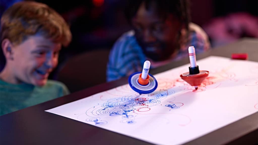Ova igra ne samo da razvija kreativnost, već i fine motoričke vještine, jer djeca moraju vješto rukovati zvrkom i flomasterom. Kombiniranjem različitih boja i uzoraka mogu nastati jedinstvena i upečatljiva djela koja mogu ispuniti male umjetnike ponosom. Tijekom igre djeca mogu naučiti osnove miješanja boja i otkriti svijet umjetnosti na nov, uzbudljiv način.Klasične igre s vrtiljkom i kombinacija marke s perivim flomasterima omogućuju djeci da stvore šarene spiralne umjetnine kao nikada prije. Djeca umetnu flomaster u vrtiljak, koriste ručku i uže za povlačenje, a zatim zavrte svoje vrtiljke kako bi stvorili zabavnu spiralnu umjetnost.